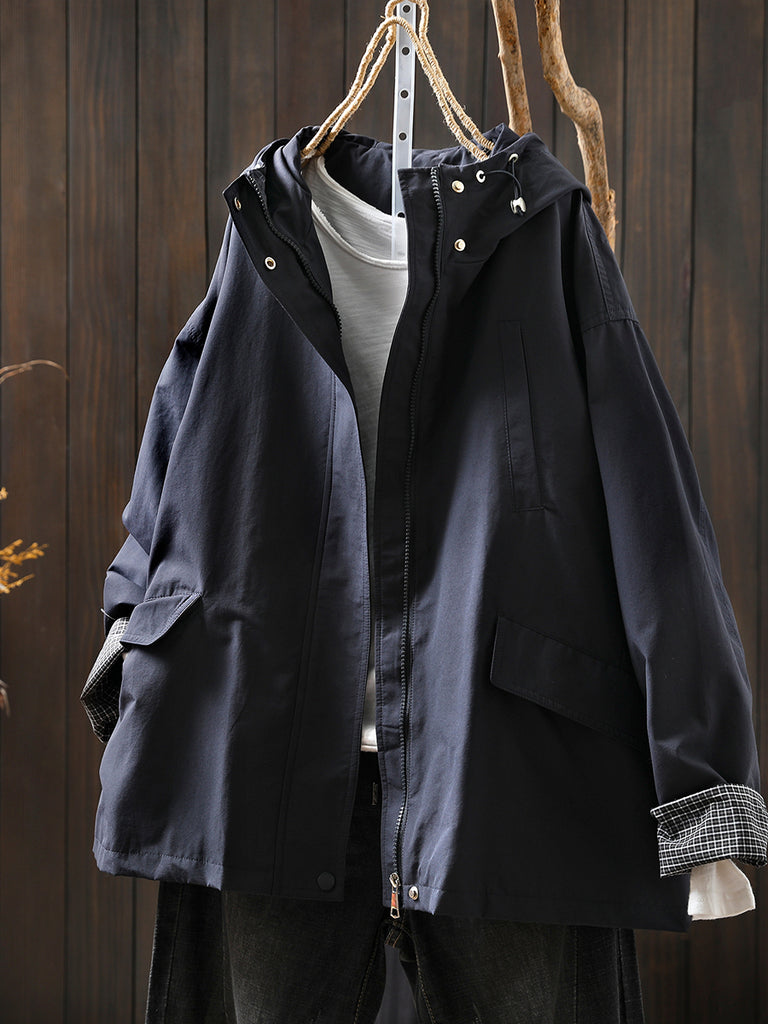 Veste coupe-vent à capuche décontractée pour femme, couleur unie, automne