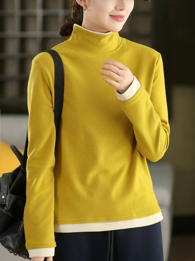 Chemisier d'hiver décontracté pour femme, col roulé uni, couleur unie