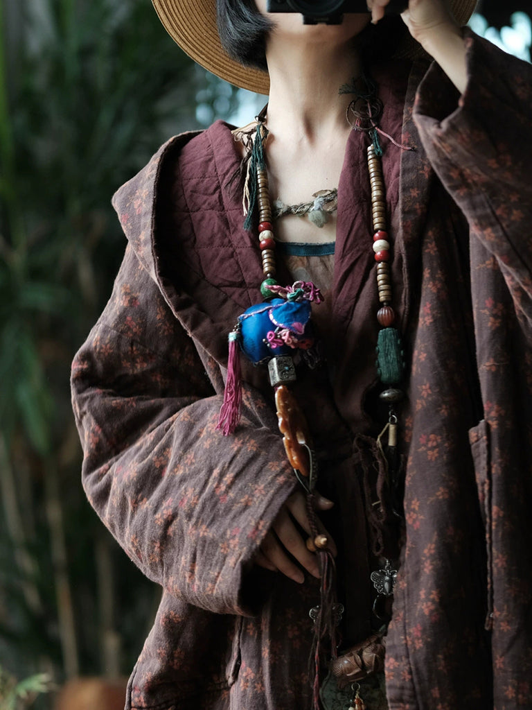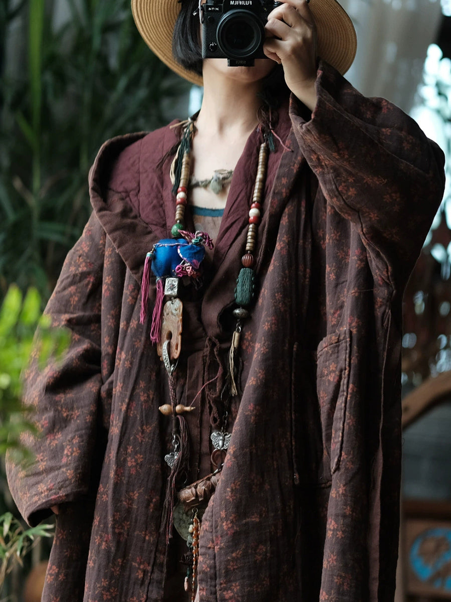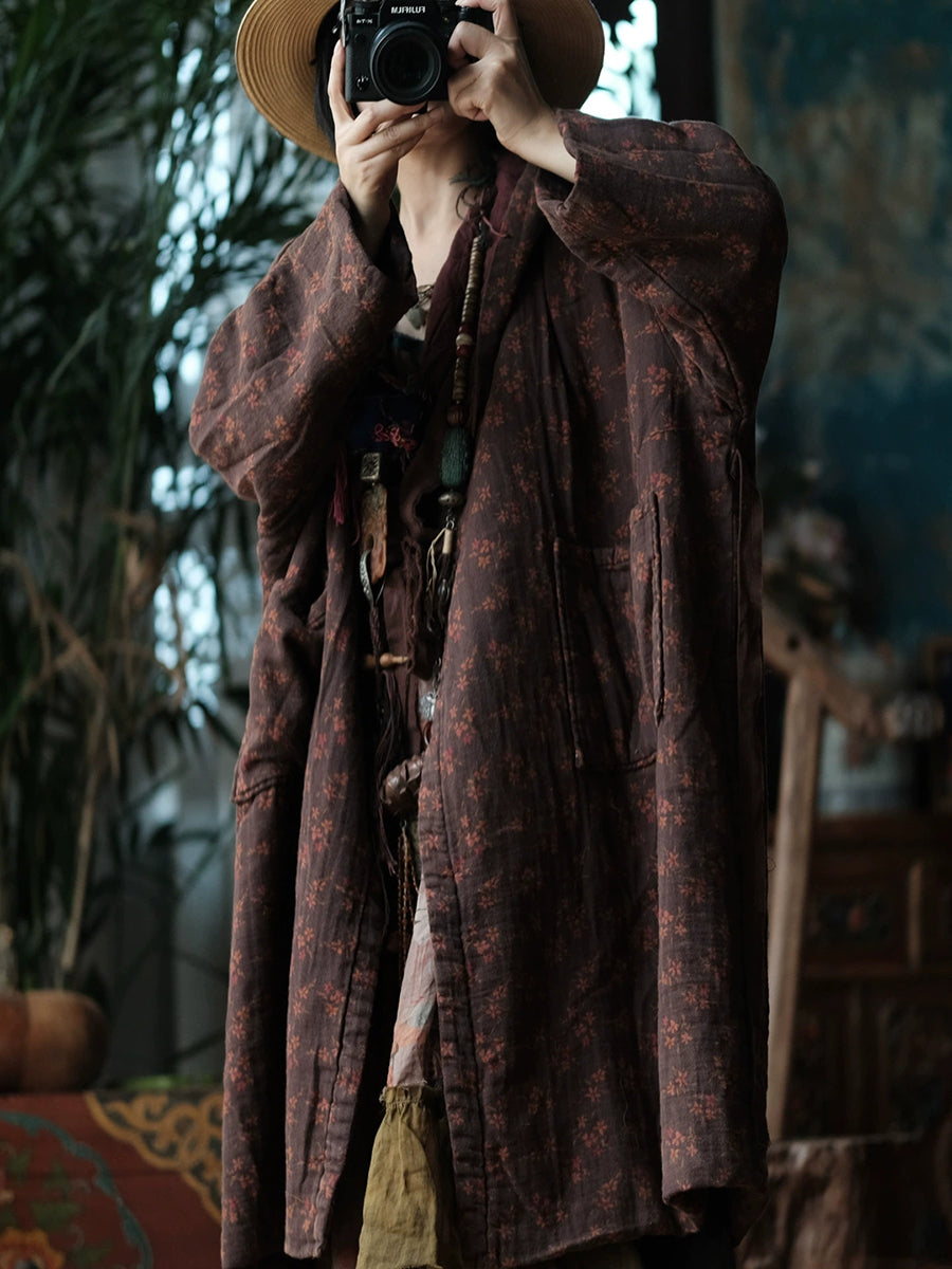 Confectionné en pur coton, ce manteau-robe d'inspiration vintage allie une élégance intemporelle à un confort optimal. Son motif floral classique évoque un charme nostalgique, tandis que son décolleté en V flatte toutes les silhouettes. Les manches raglan offrent une grande liberté de mouvement, idéale pour superposer les vêtements par temps frais. Son esthétique rétro s'intègre parfaitement aux garde-robes d'automne et d'hiver, offrant de multiples possibilités de style pour celles et ceux qui apprécient le charme vintage.