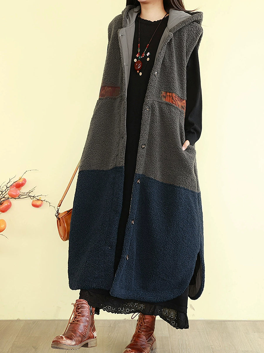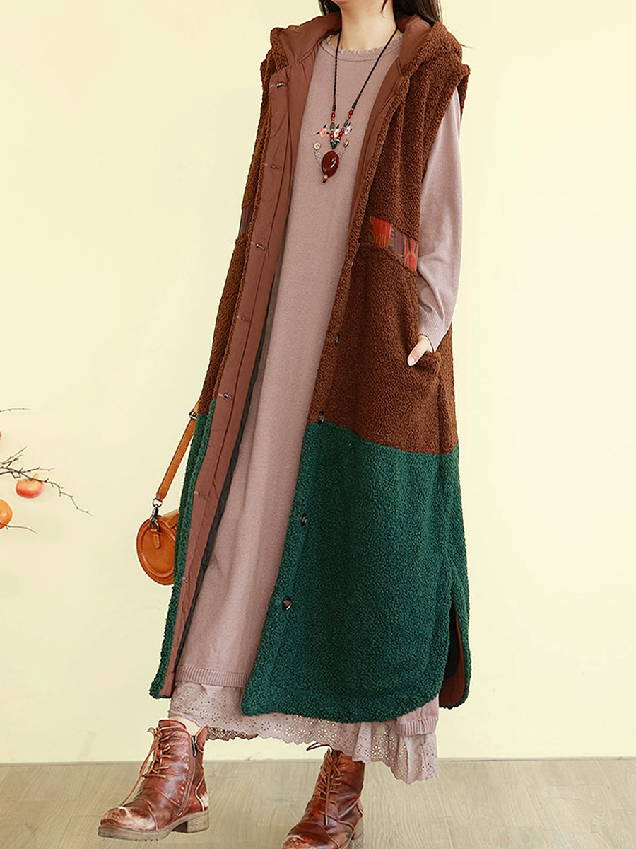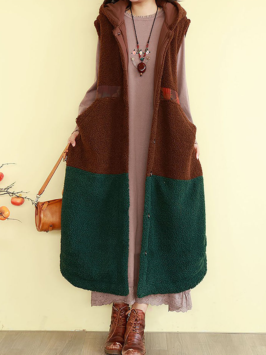 Gilet d'hiver rembourré à capuche en polaire colorblock pour femme