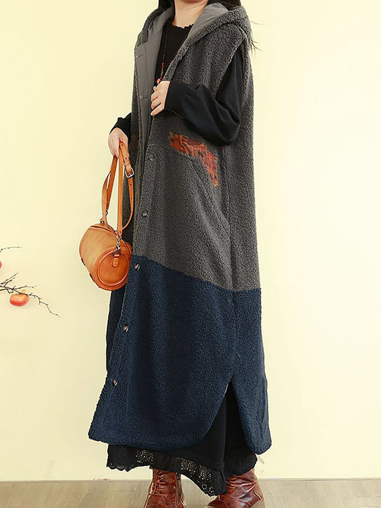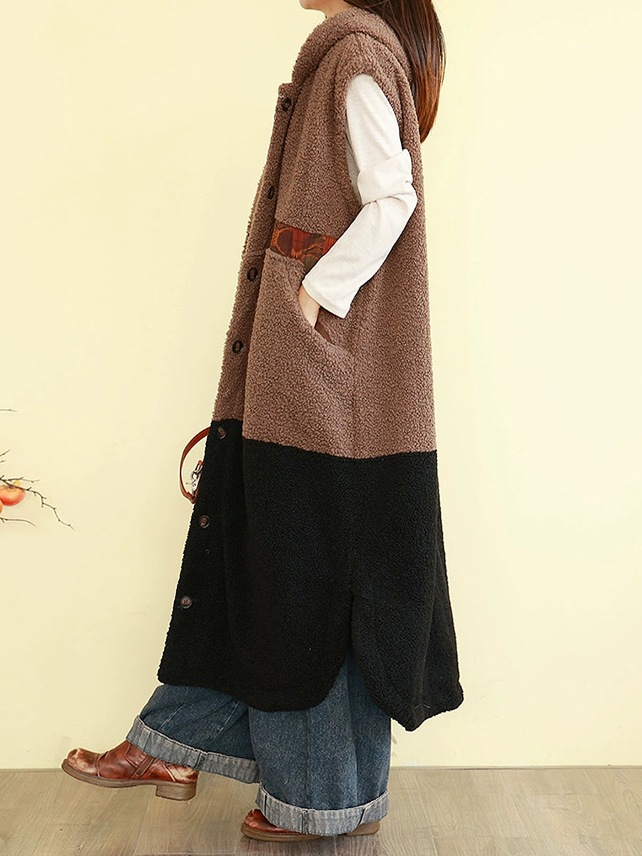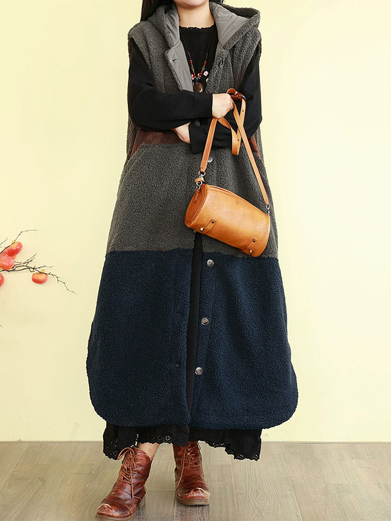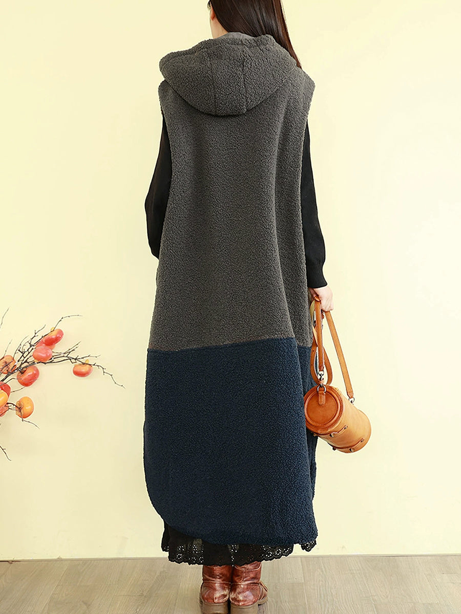Gilet d'hiver rembourré à capuche en polaire colorblock pour femme