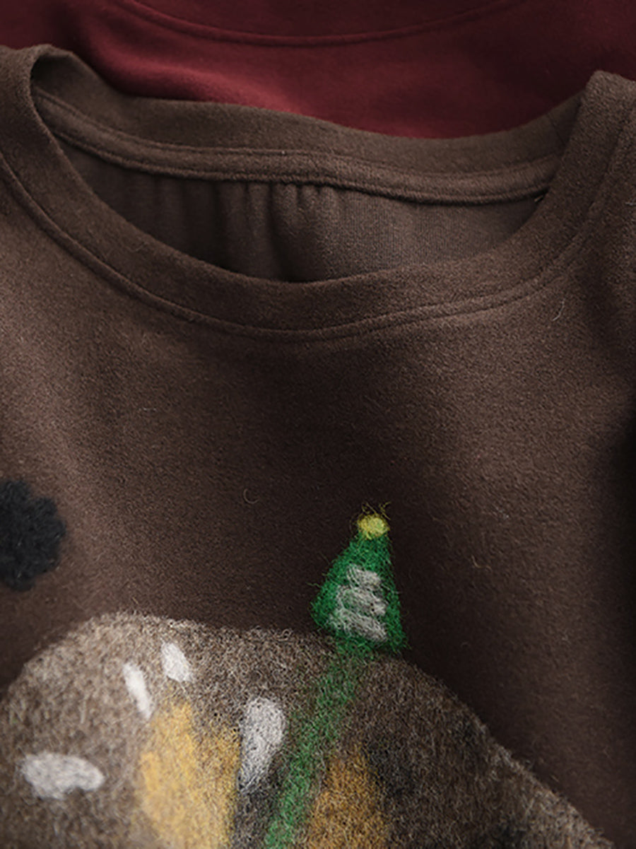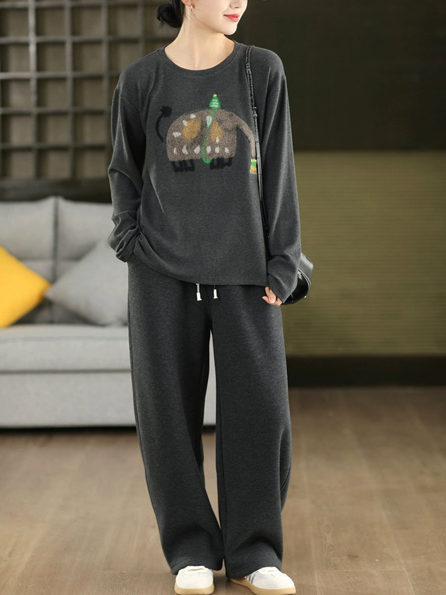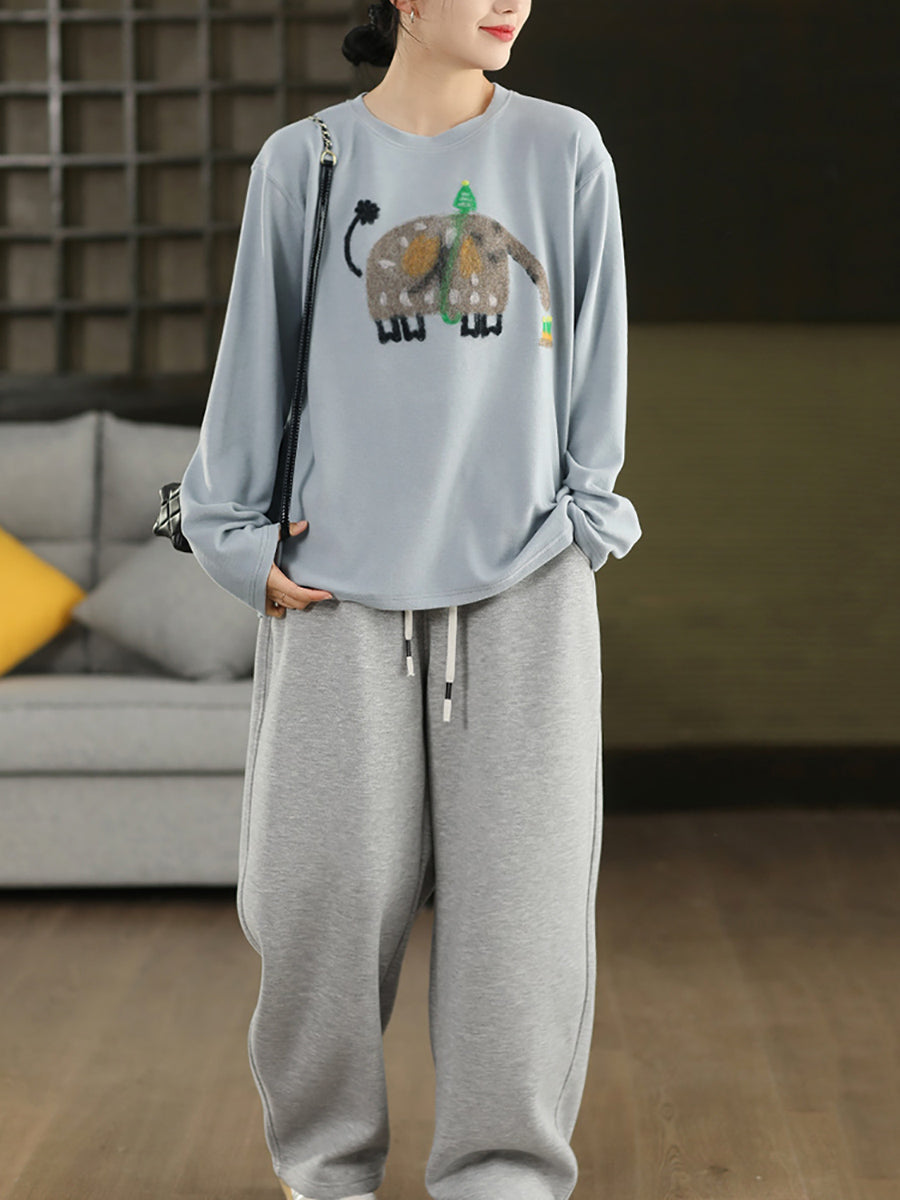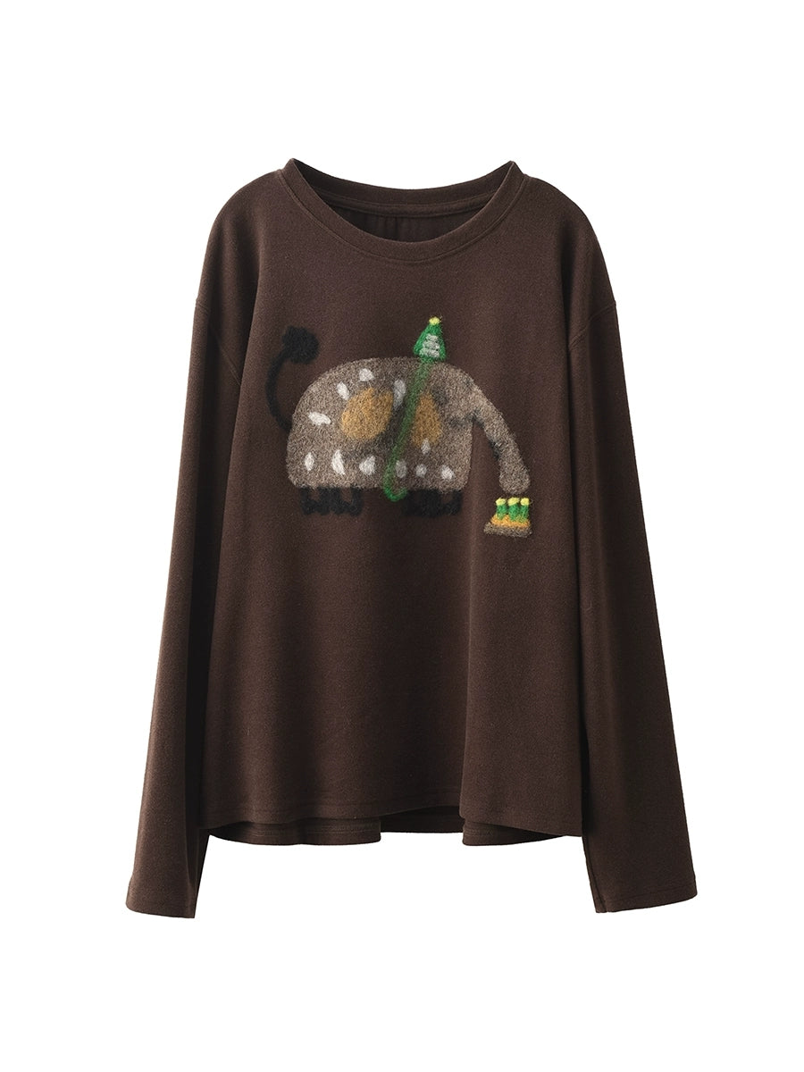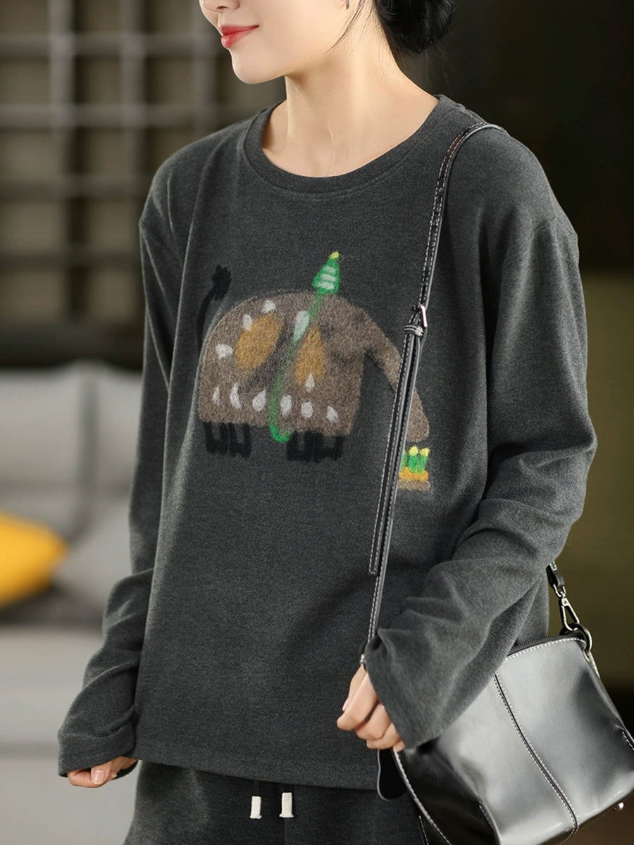 Blouse d'hiver pour femme, style artistique, à col rond et imprimé éléphant floqué.