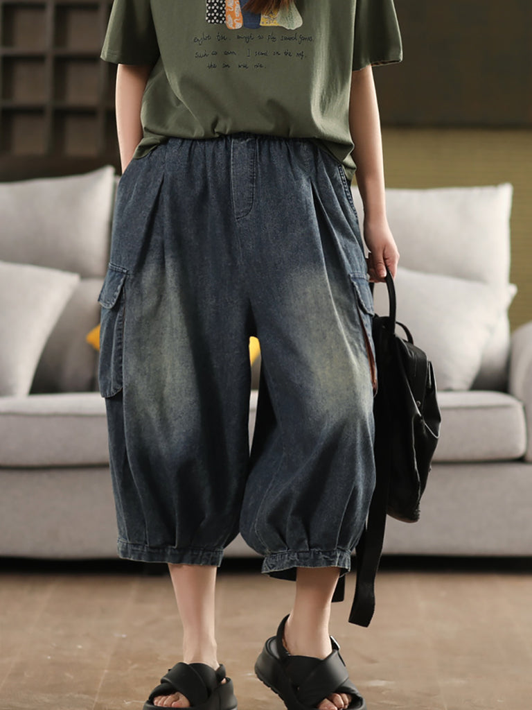 Pantalon sarouel décontracté d'été en denim de couleur pure pour femme