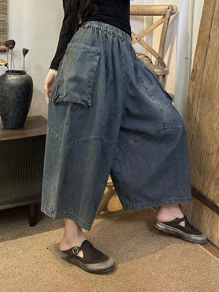 Pantalon large en denim patchwork rétro pour femme