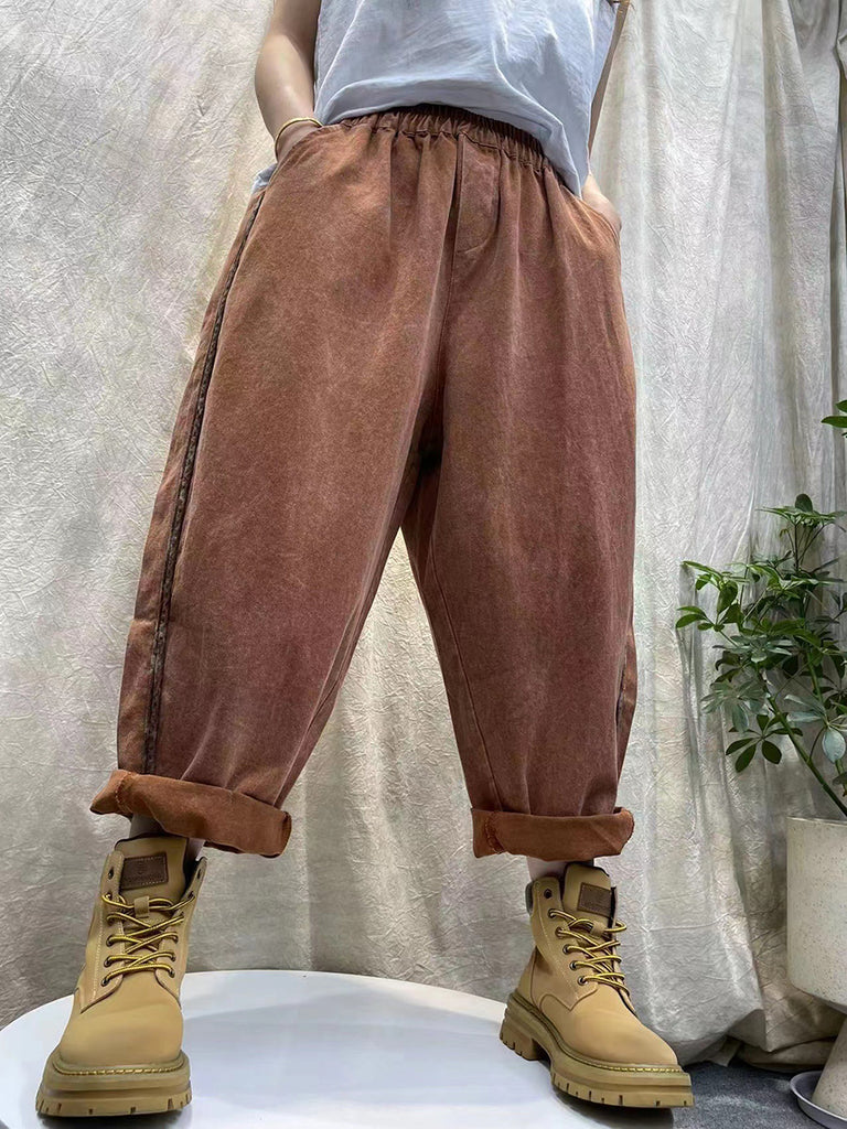 Pantalon harem vintage hiver pour femme en denim uni couleur unie