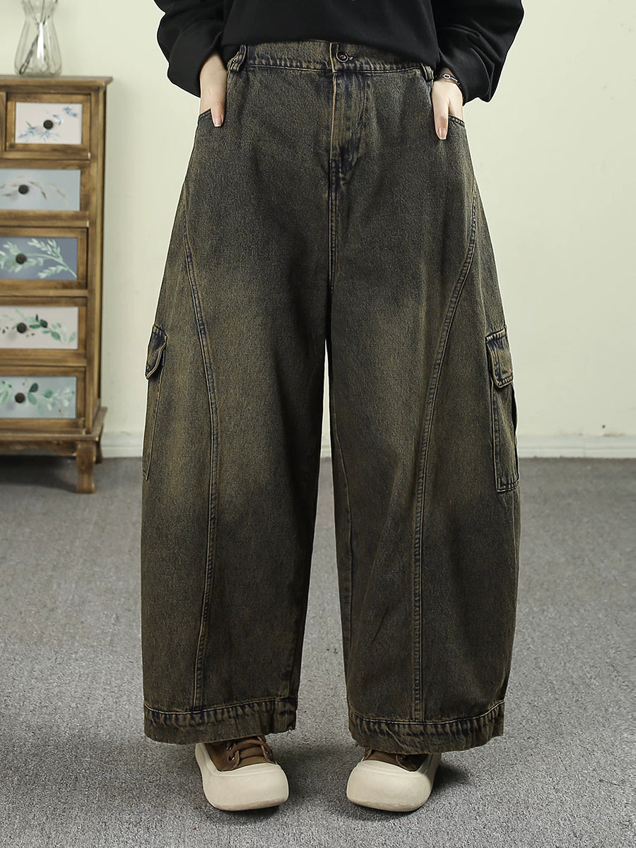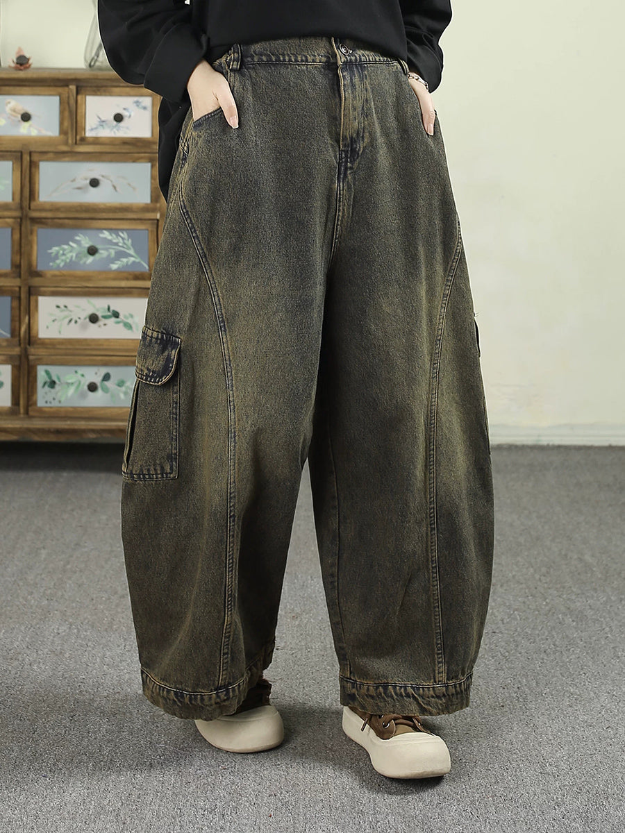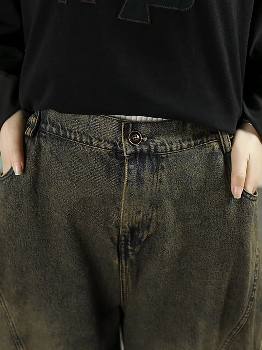 Pantalon harem vintage en denim délavé pour femme
