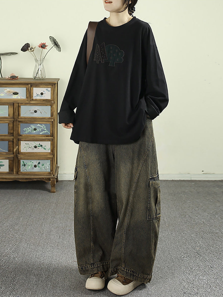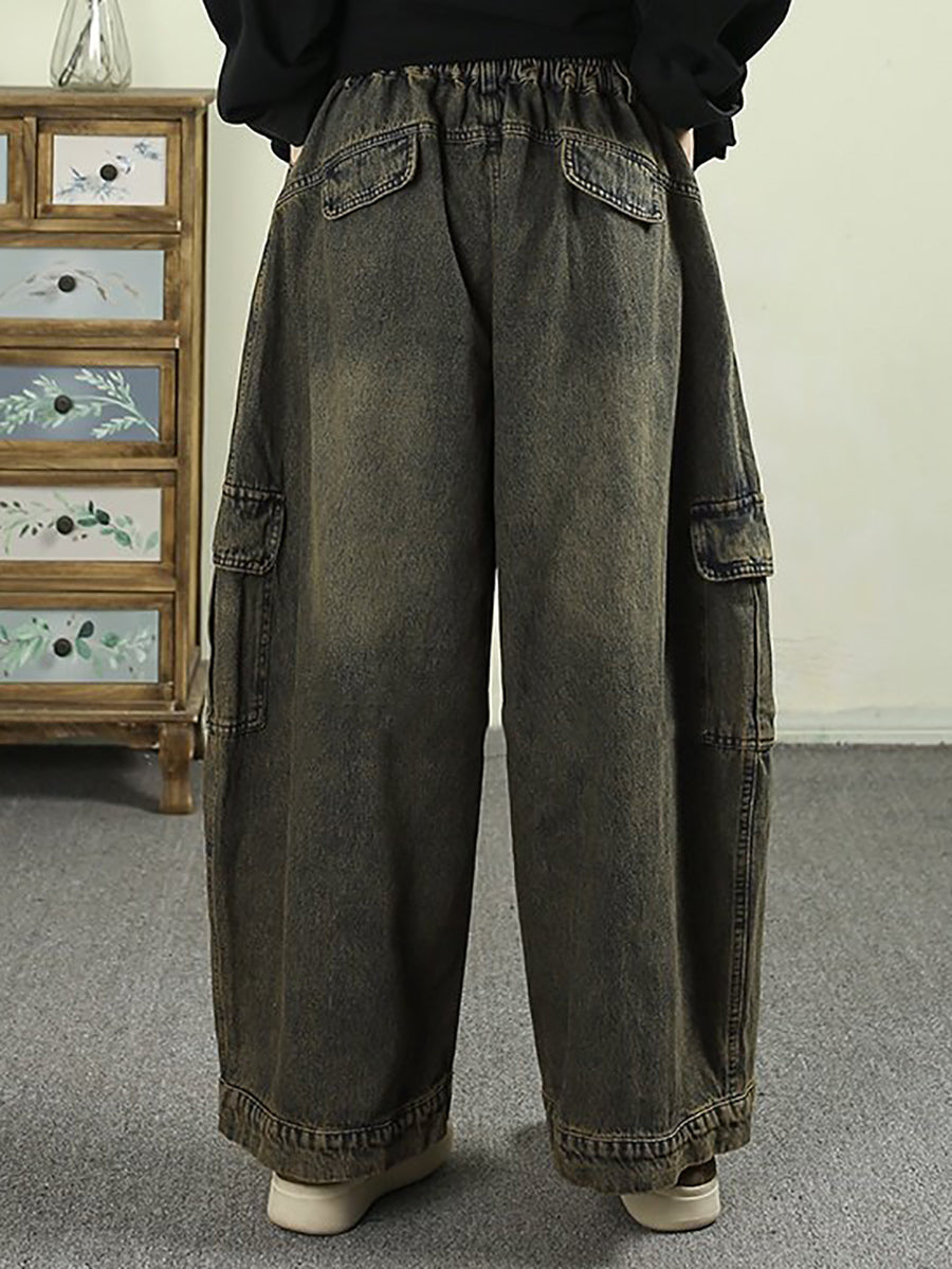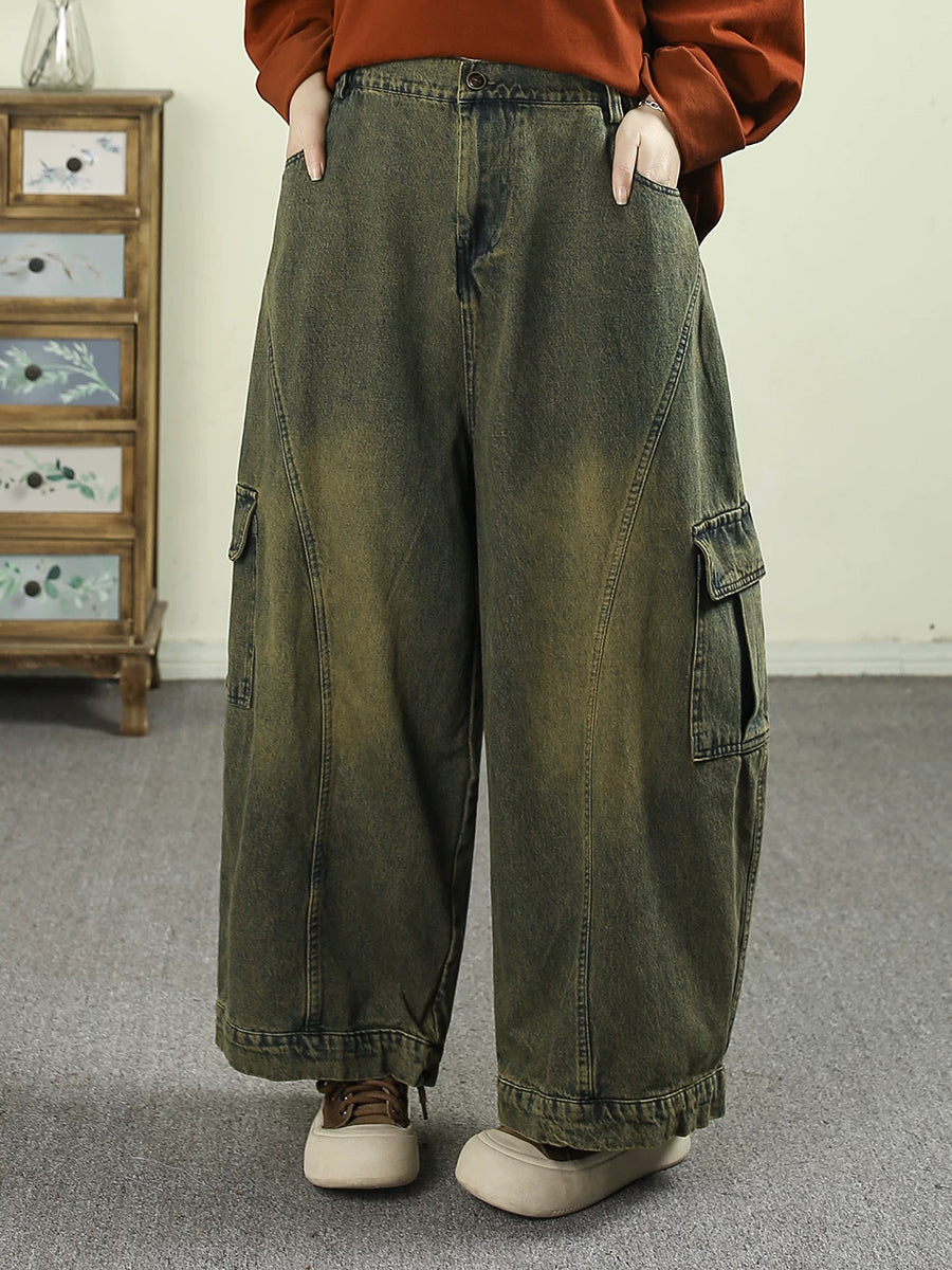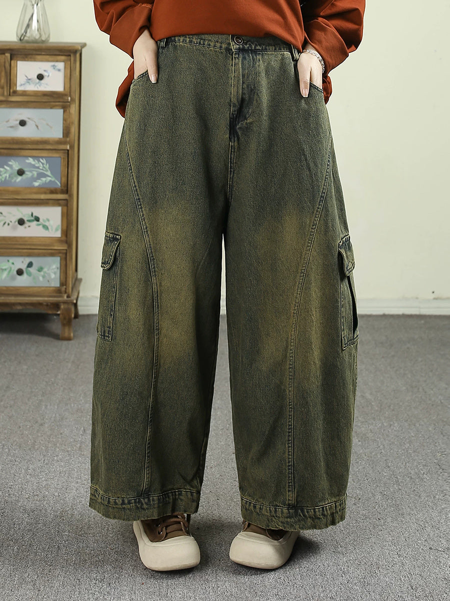 Pantalon harem vintage en denim délavé pour femme