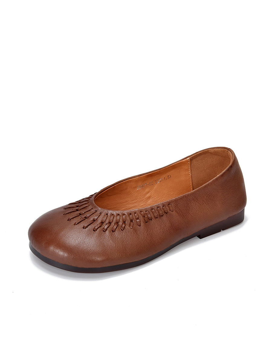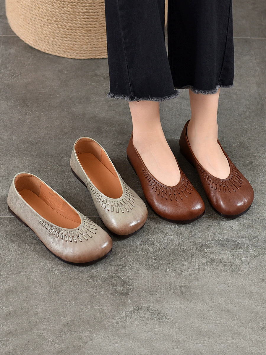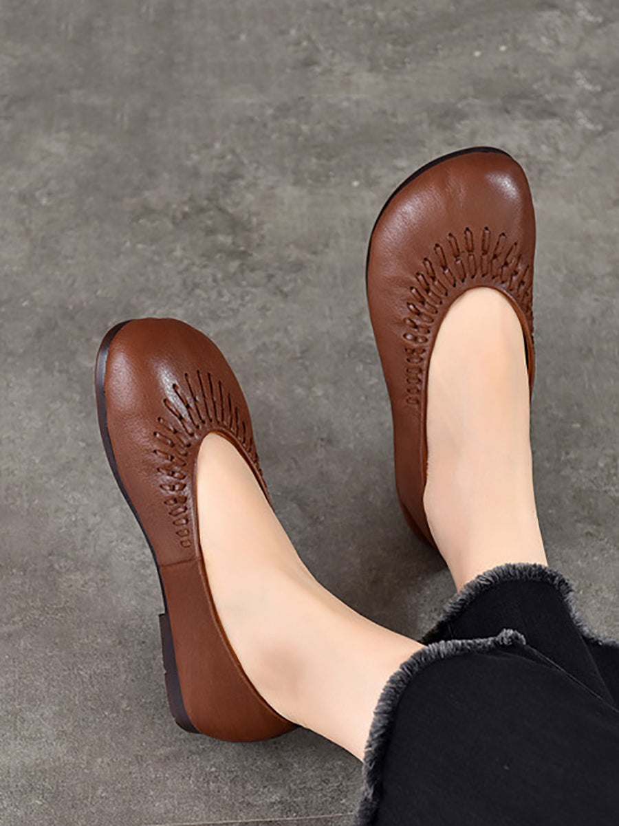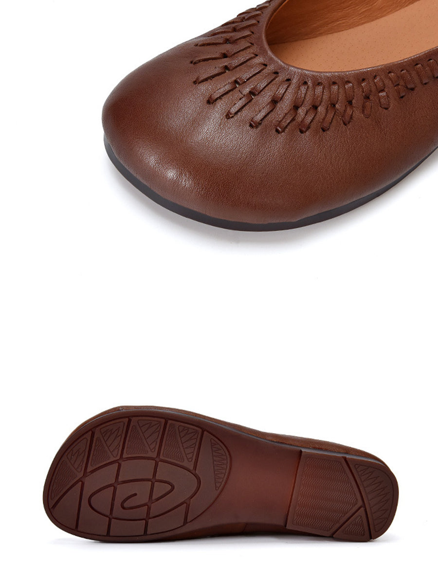 Chaussures plates d'été vintage pour femmes en cuir véritable