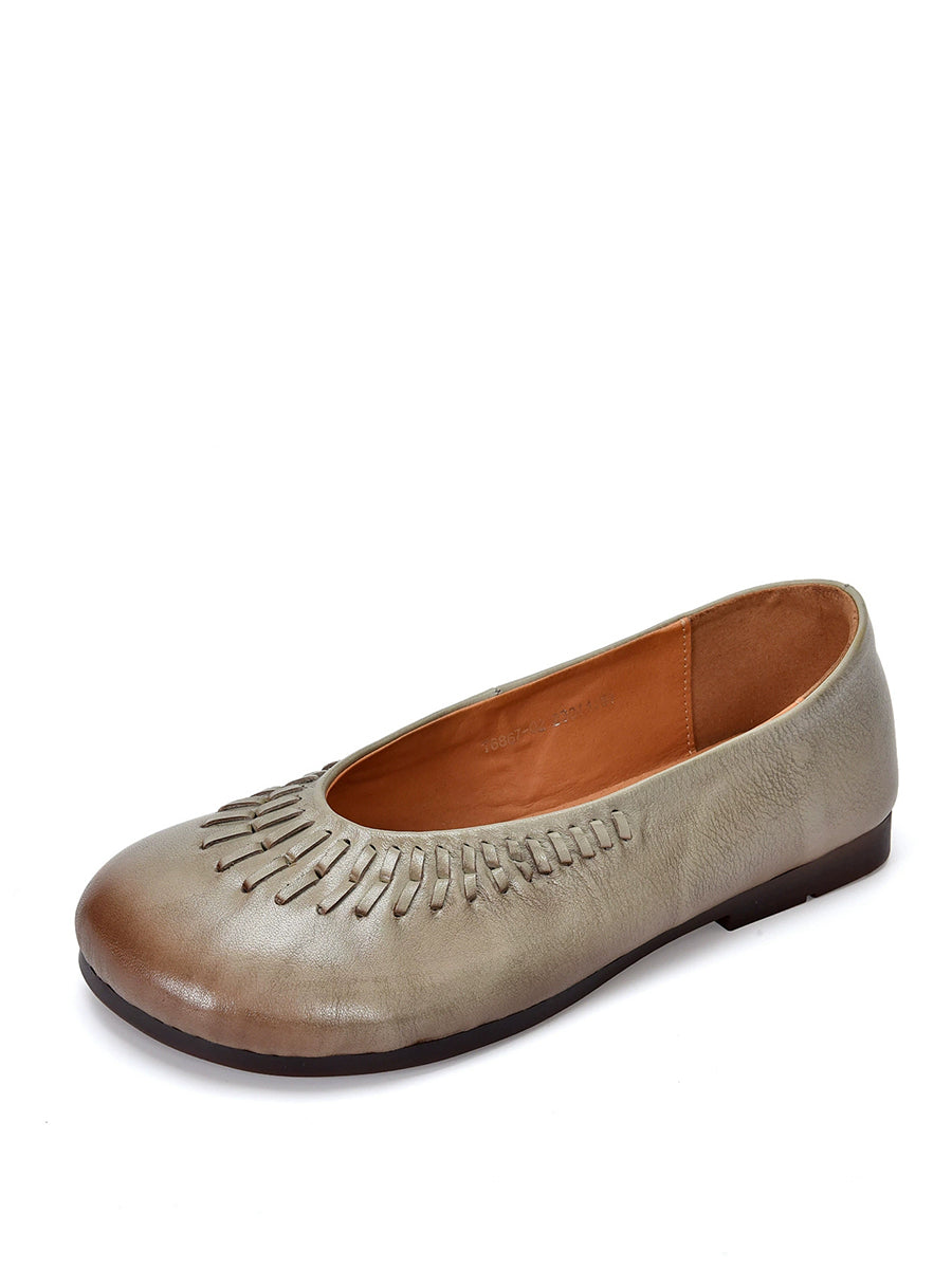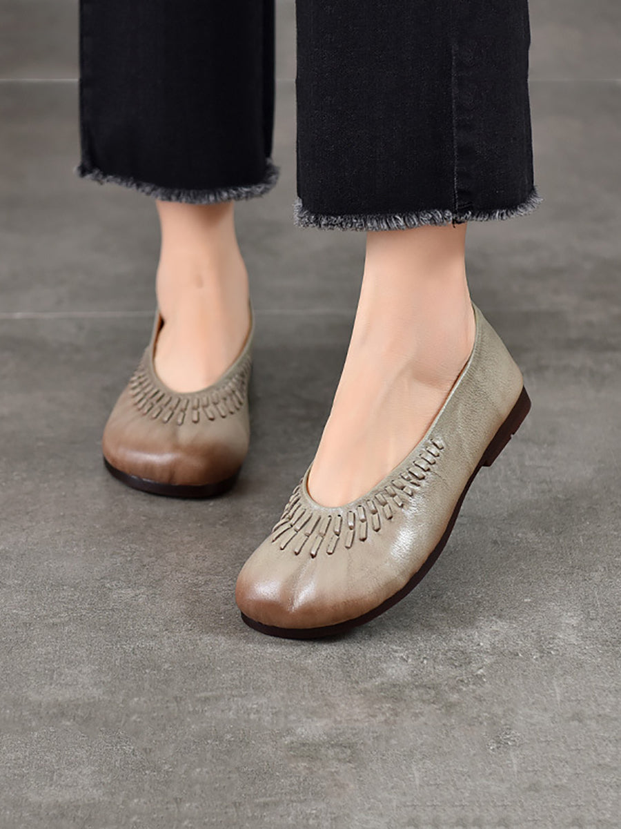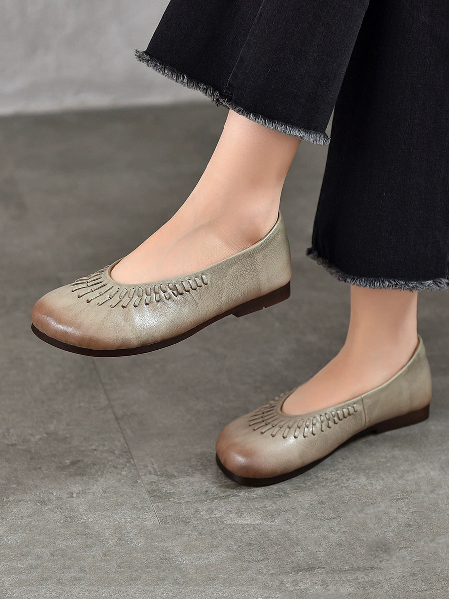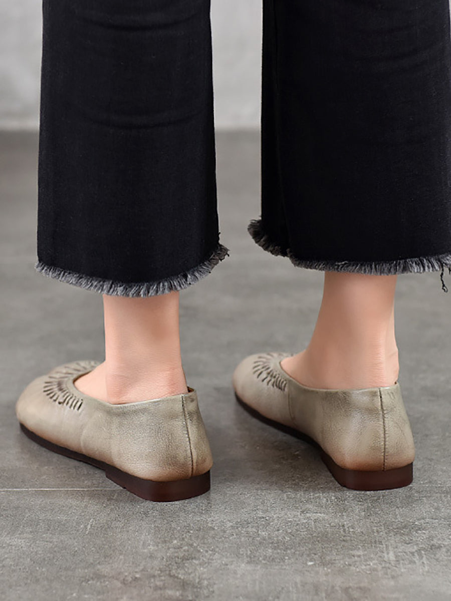 Chaussures plates d'été vintage pour femmes en cuir véritable