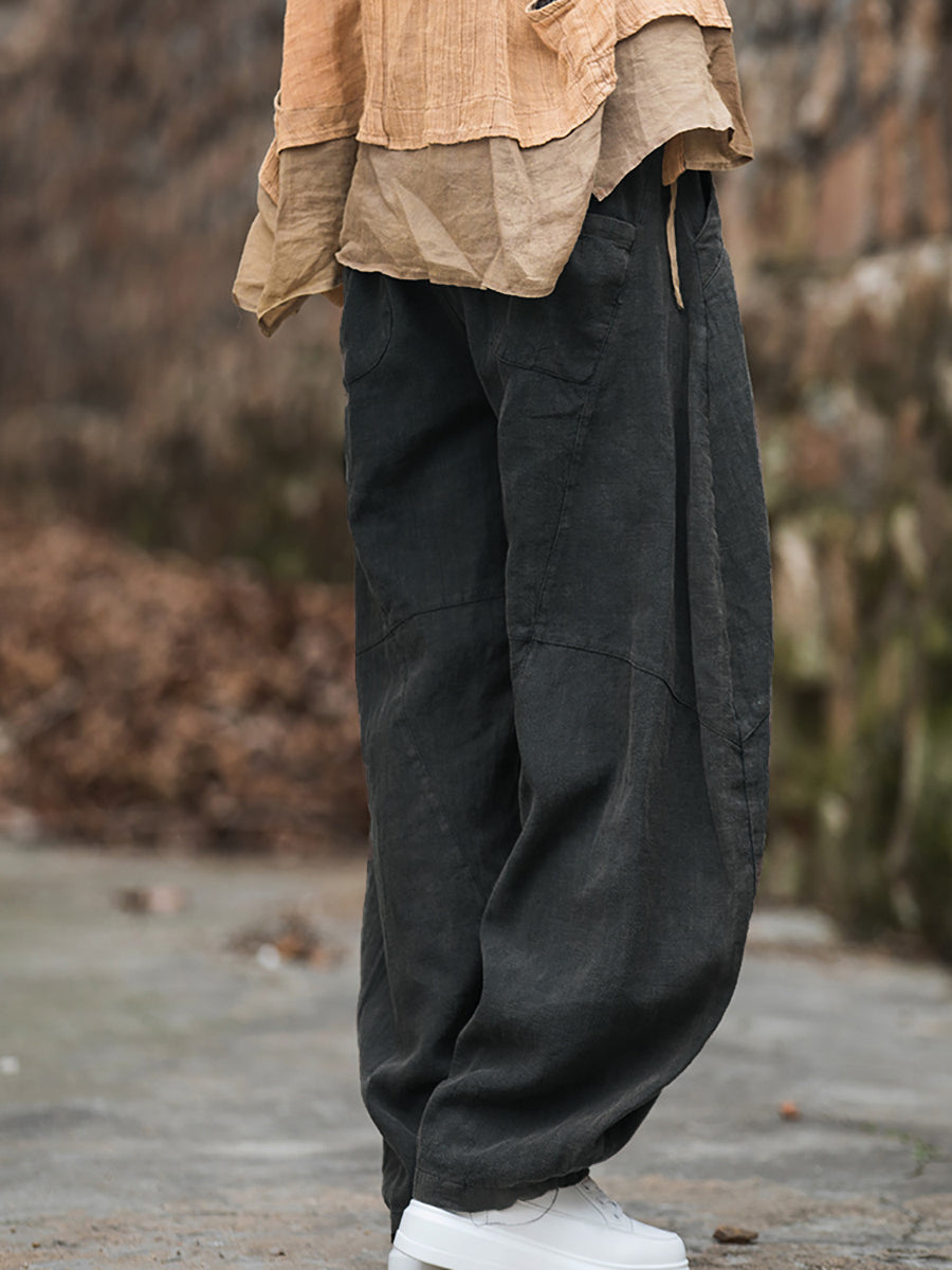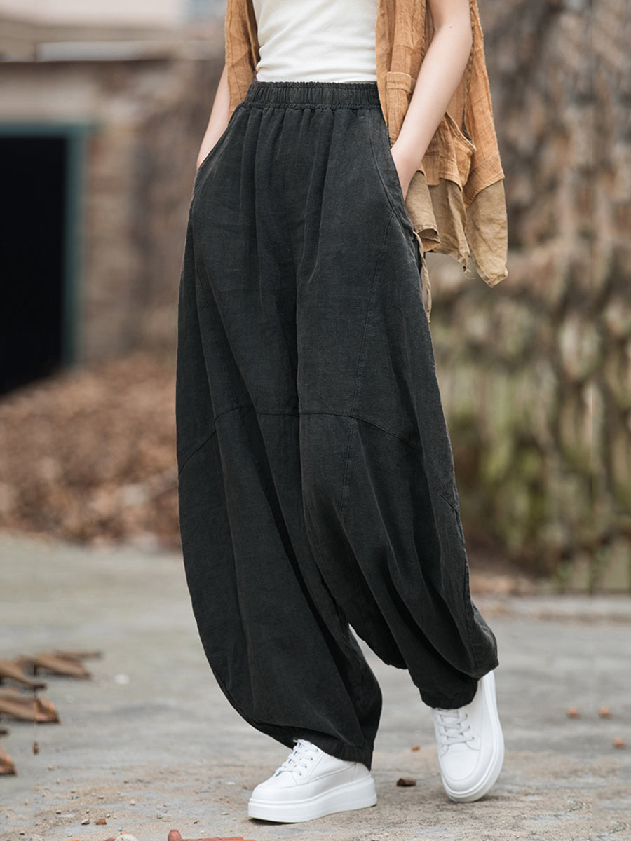 Ce pantalon sarouel de style rétro présente une taille élastique et un motif uni. Avec un design sur toute la longueur et des poches pratiques, il est parfait pour les saisons plus froides comme l'automne et l'hiver.