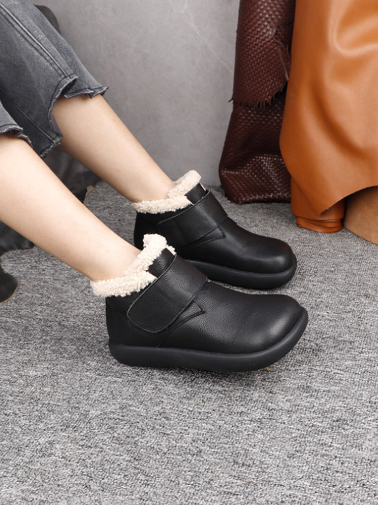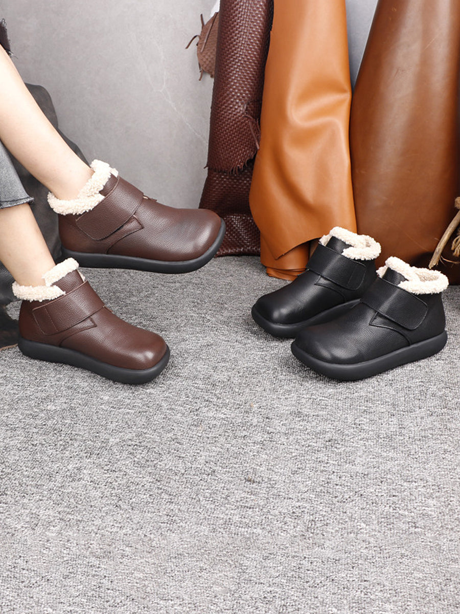 Bottes décontractées vintage en cuir véritable doublées de polaire pour femmes