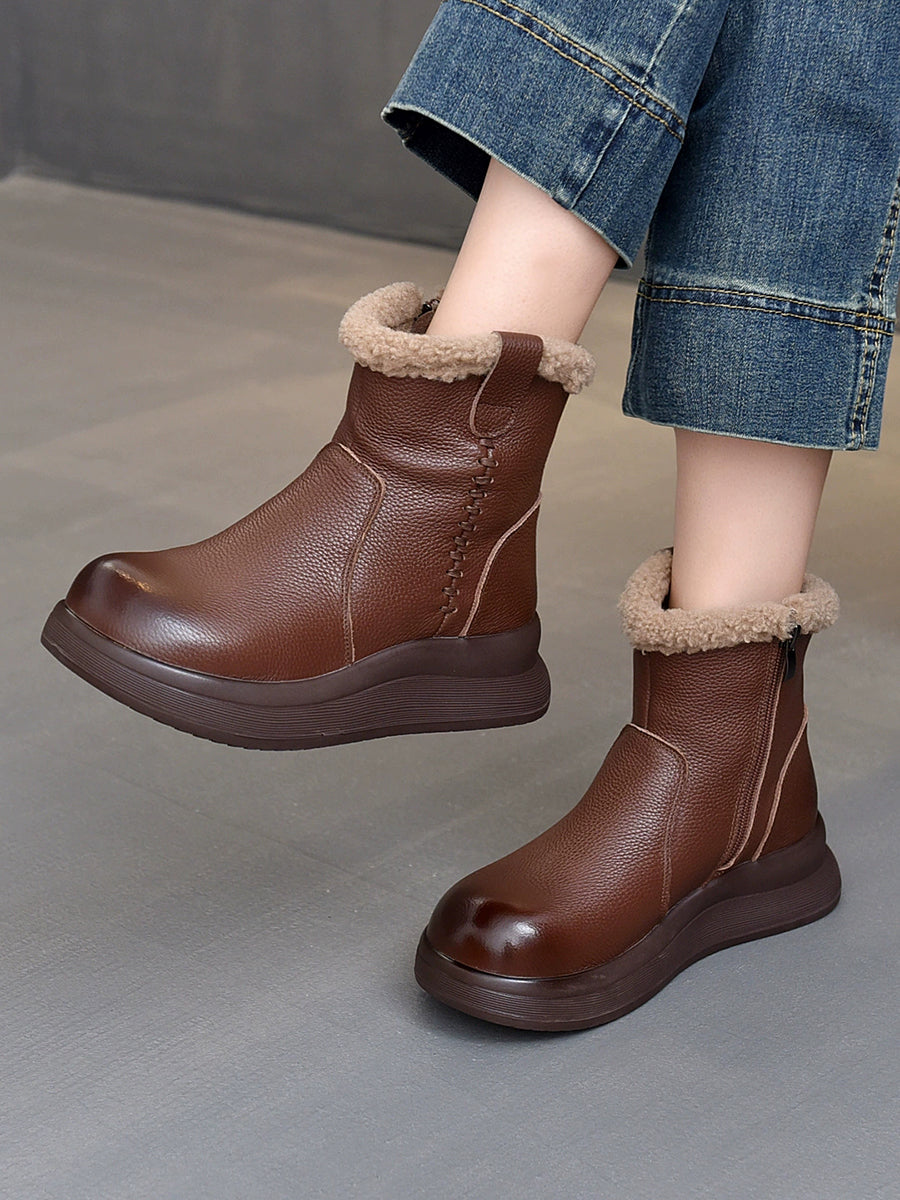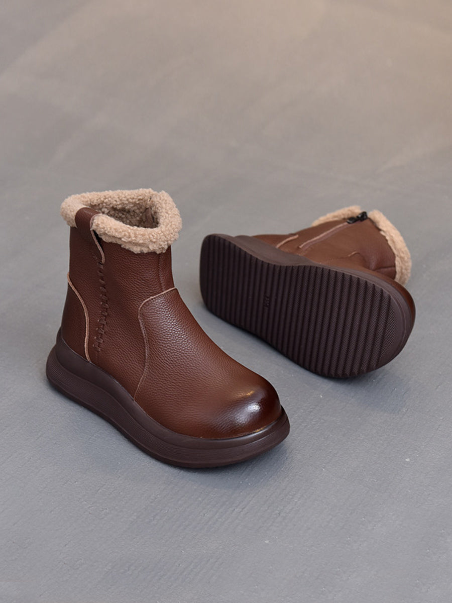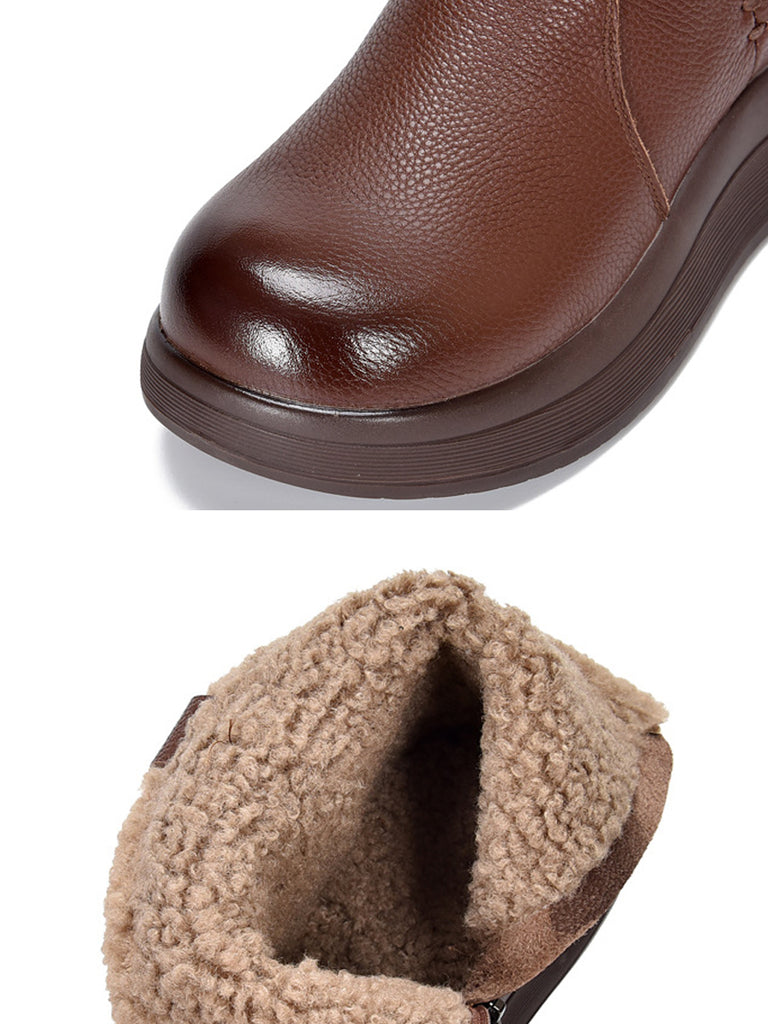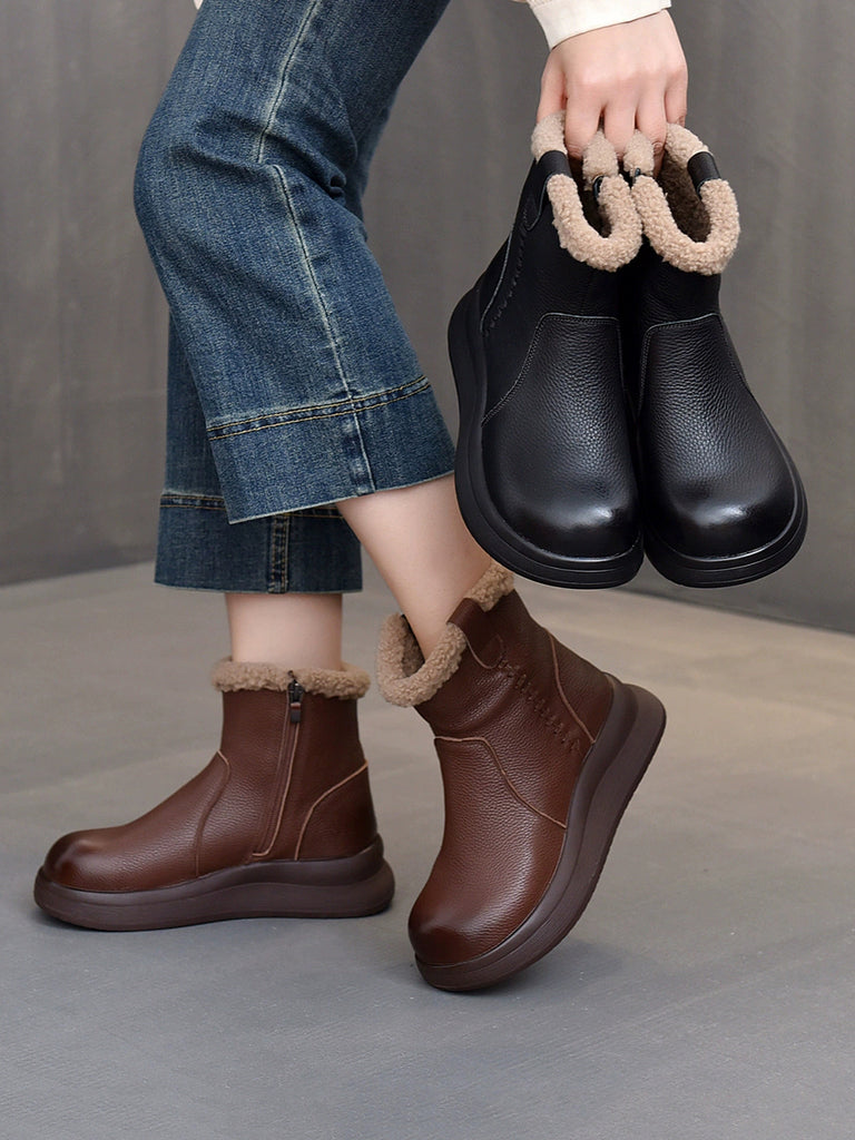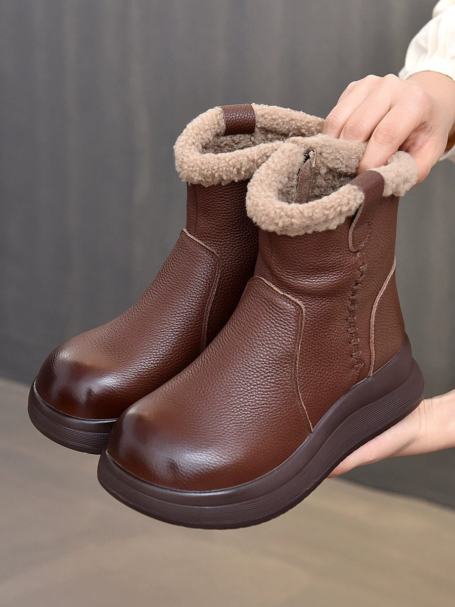 Bottes vintage pour femmes en cuir véritable doublées de polaire