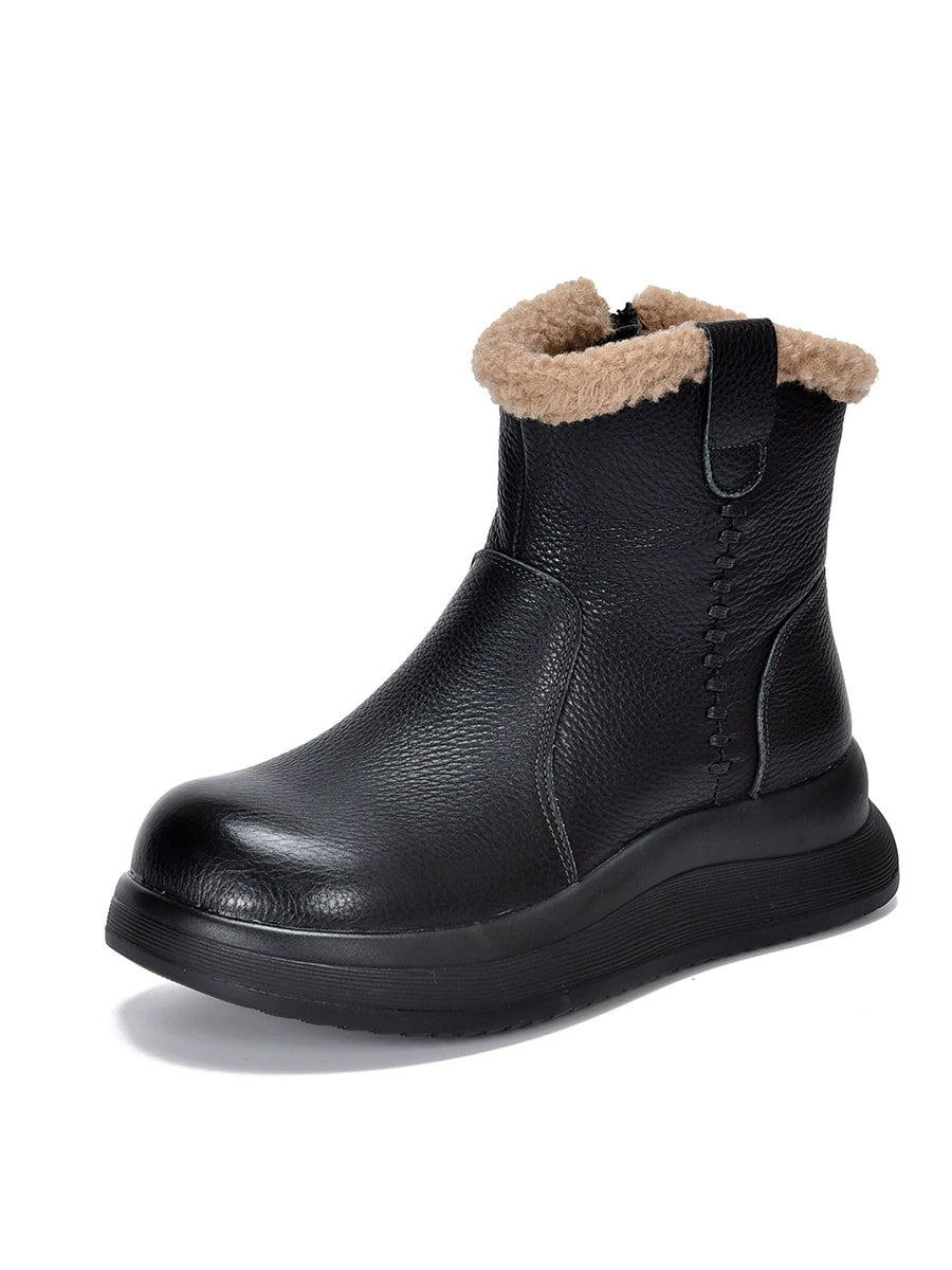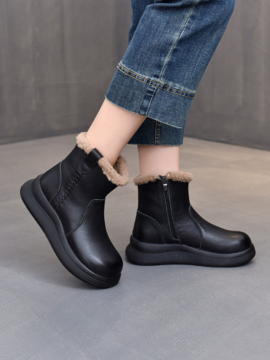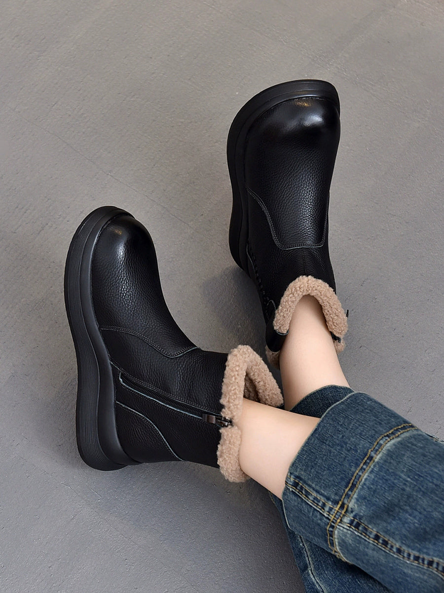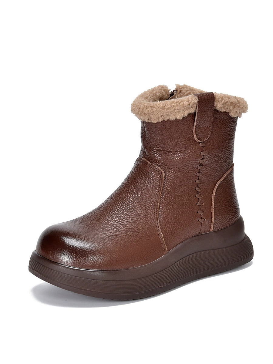 Bottes vintage pour femmes en cuir véritable doublées de polaire