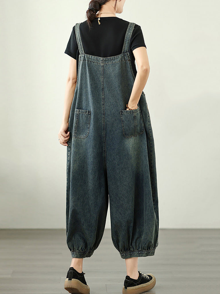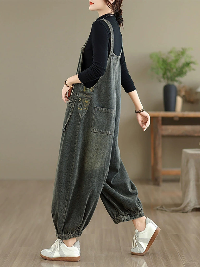 Combinaison ample en denim avec poches artistiques pour femmes