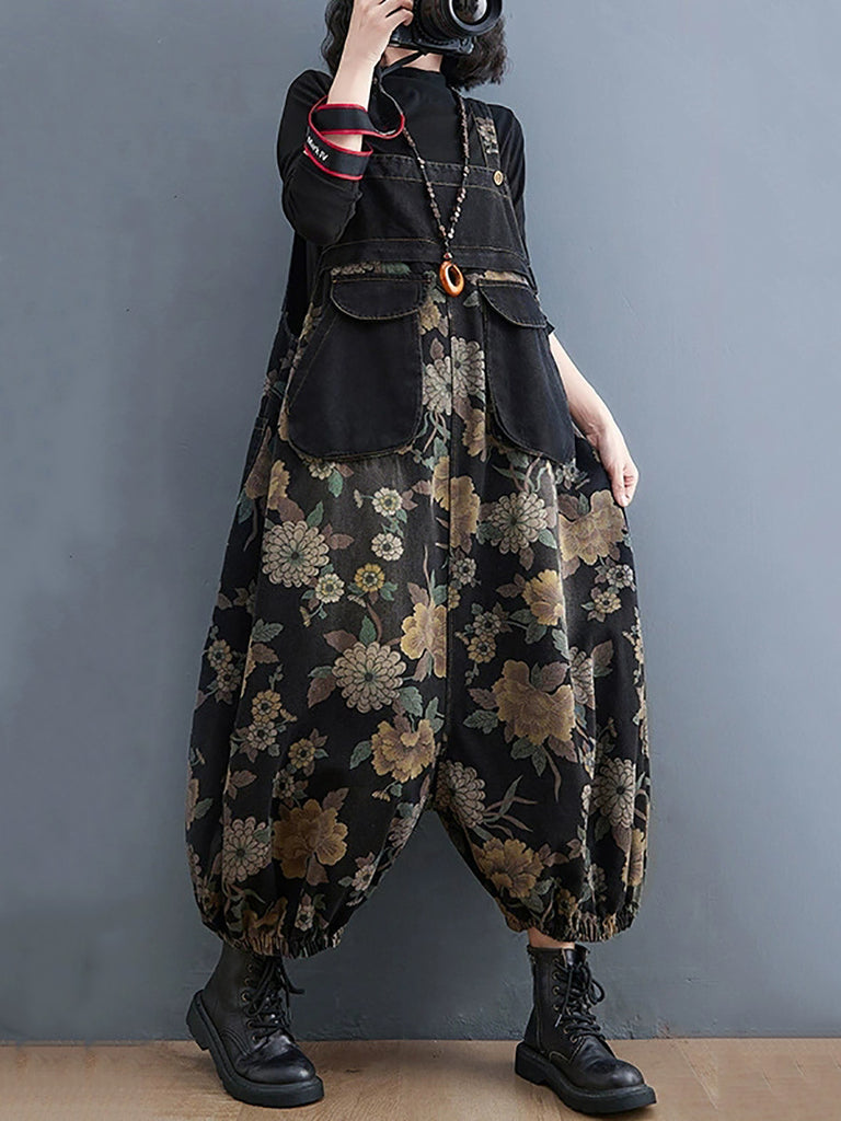 Combinaisons sarouel en denim à fleurs rétro pour femmes, automne