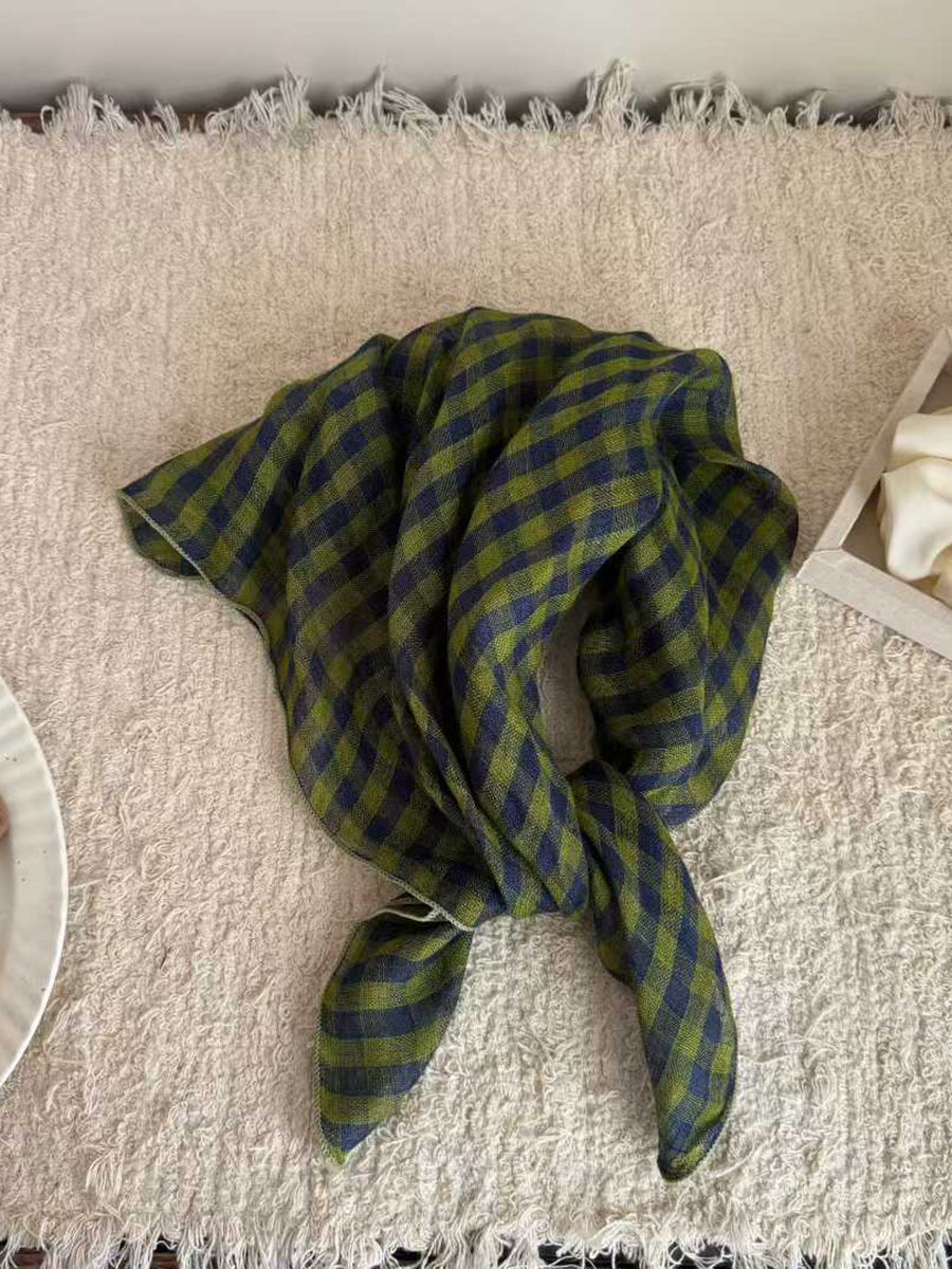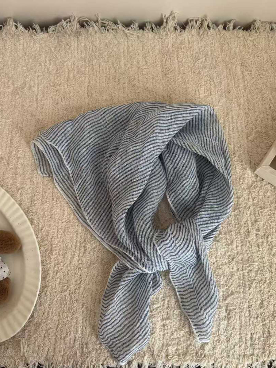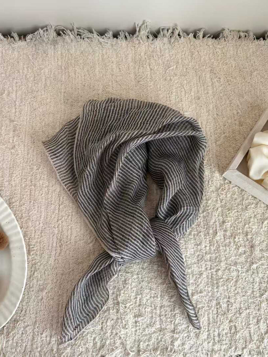 Écharpe carrée en lin doux à rayures artistiques