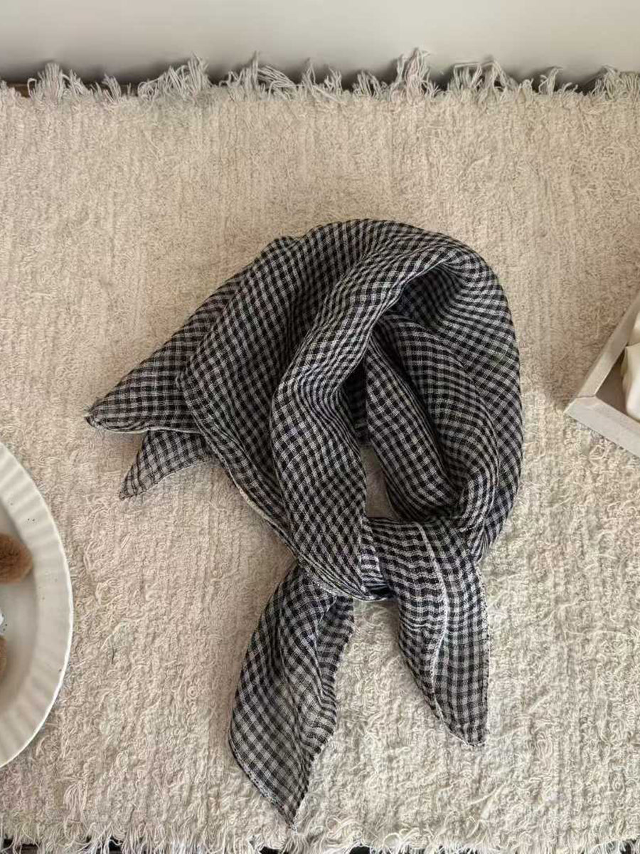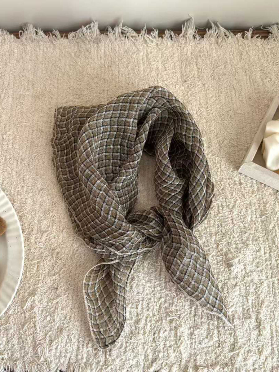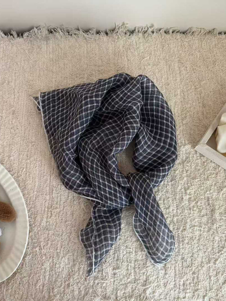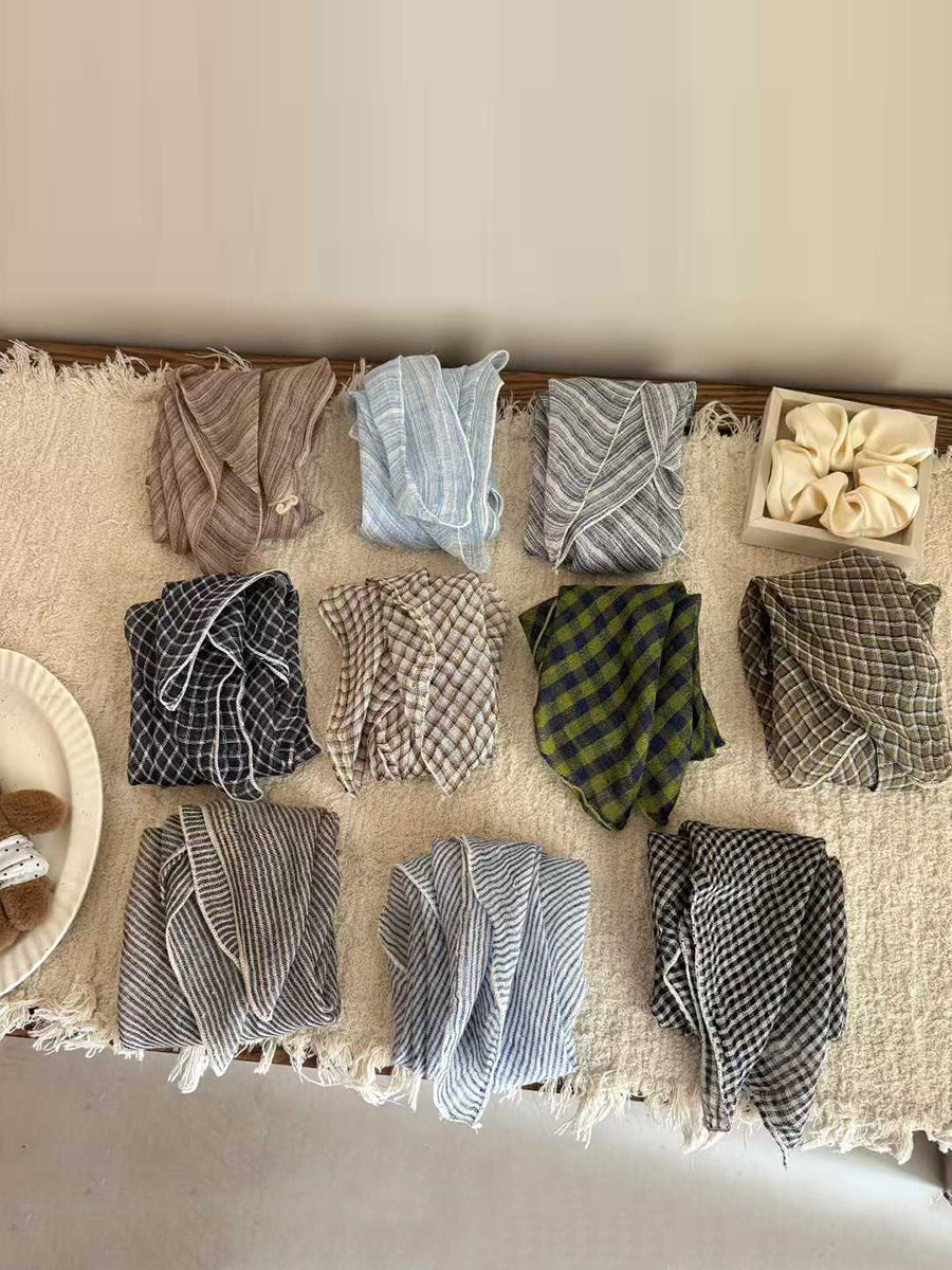 Écharpe carrée en lin doux à rayures artistiques