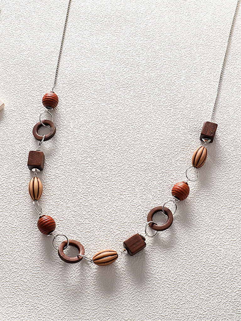 Collier vintage géométrique en bois et alliage plastique pour femme