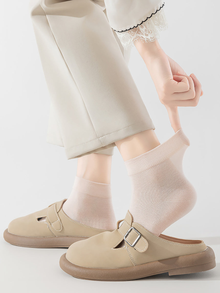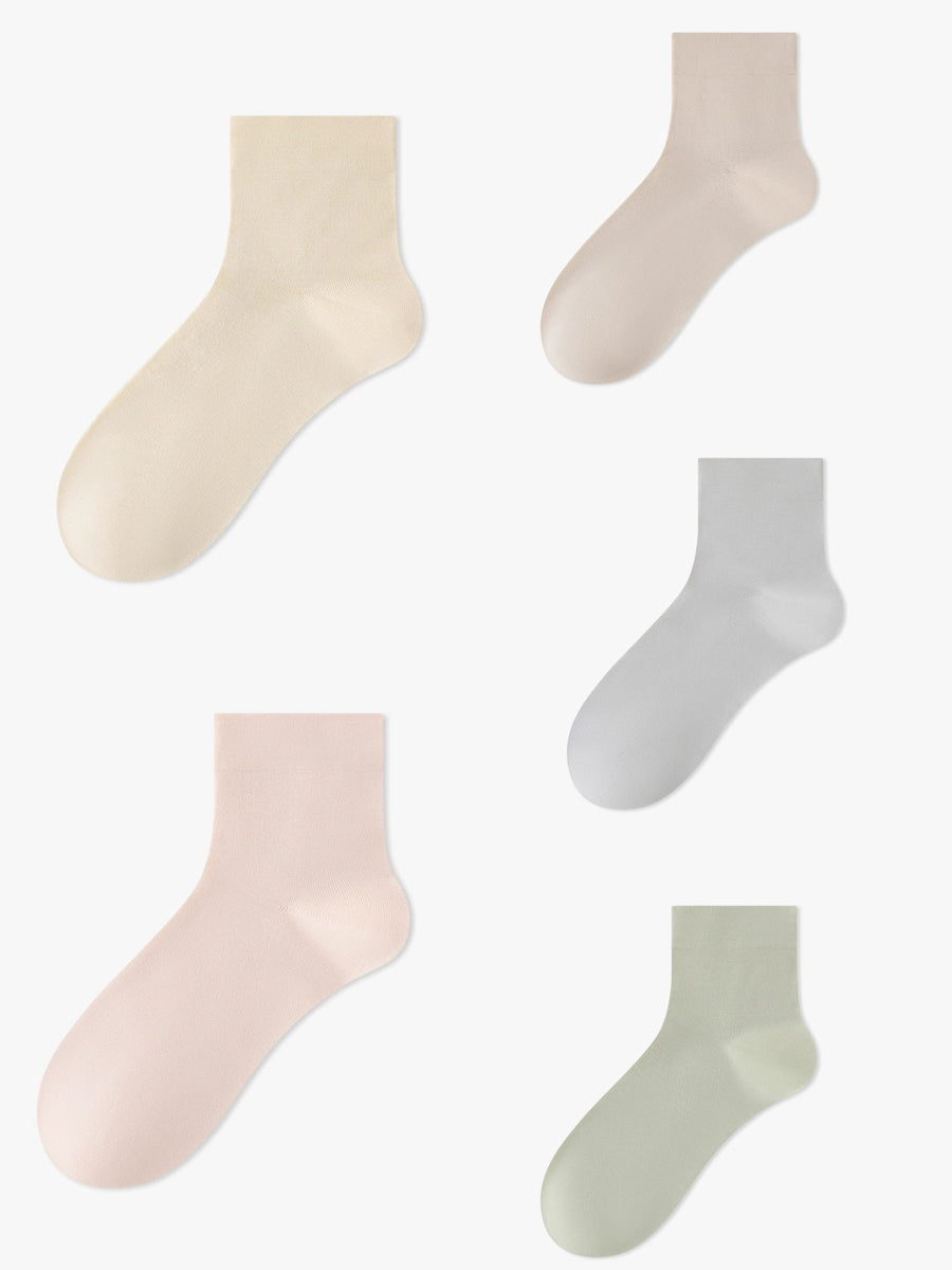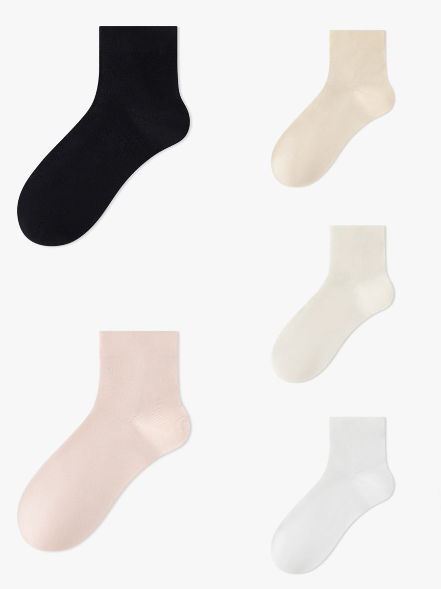 Lot de 5 paires de chaussettes d'été décontractées pour femmes, couleur unie.