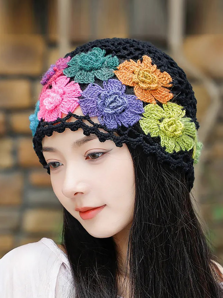 Bonnet en tricot à fleurs colorées et artistiques pour femme
