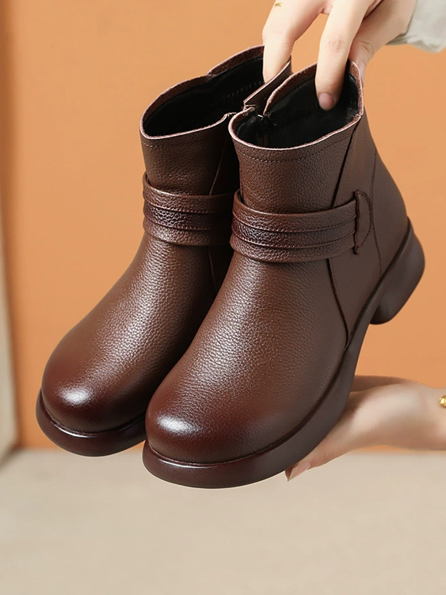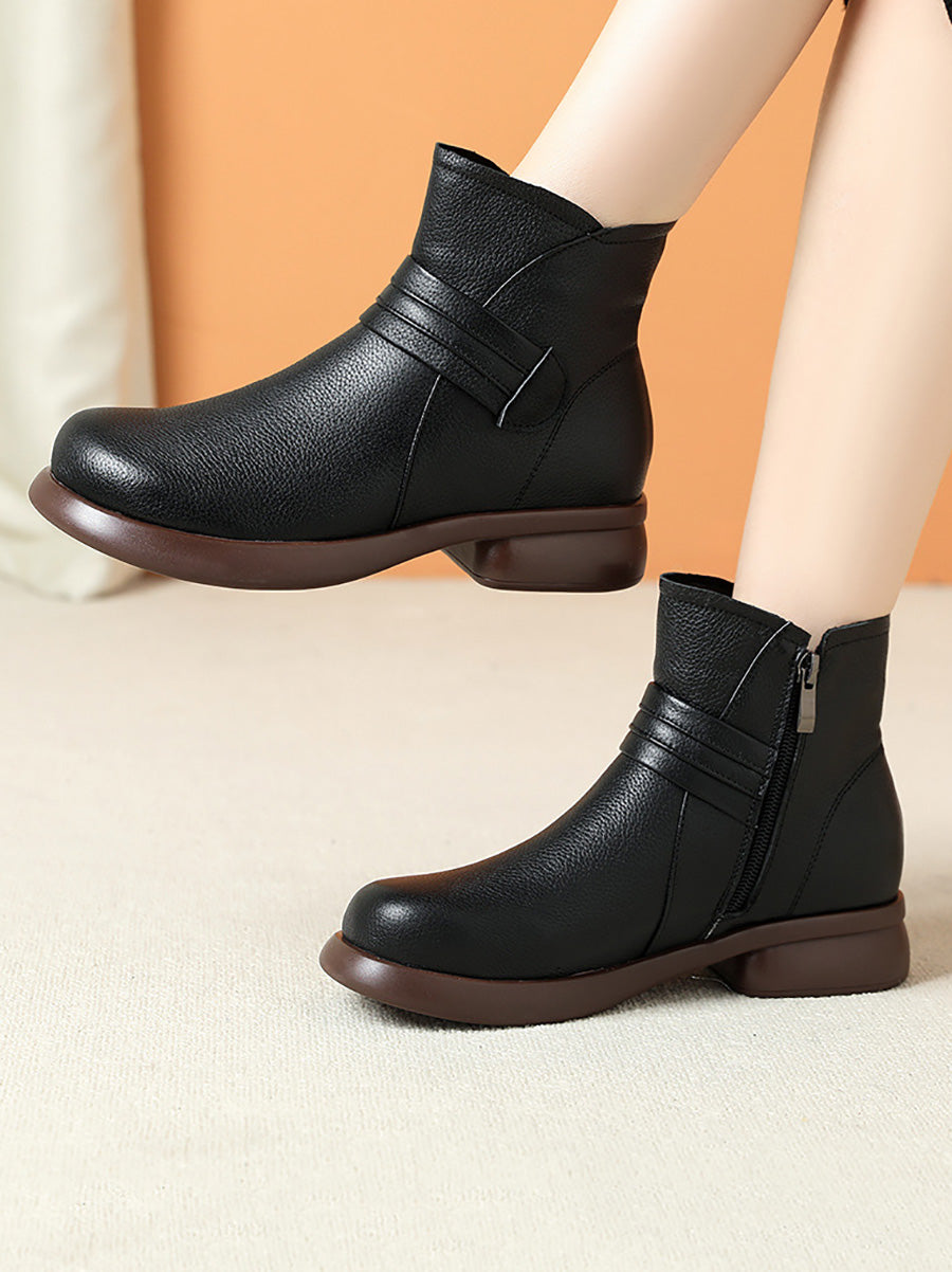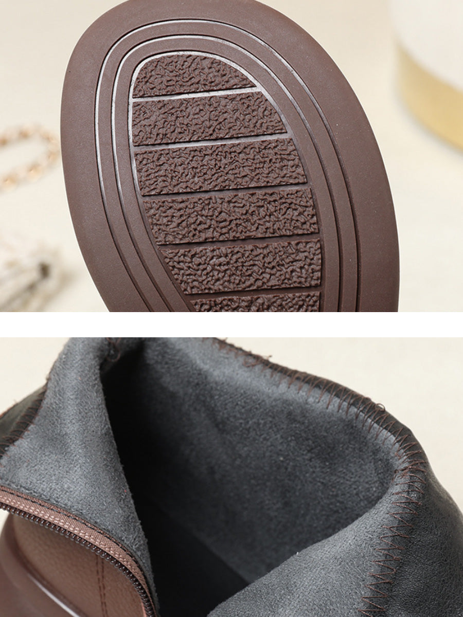 Bottes d'hiver pour femmes en cuir véritable à petits talons.