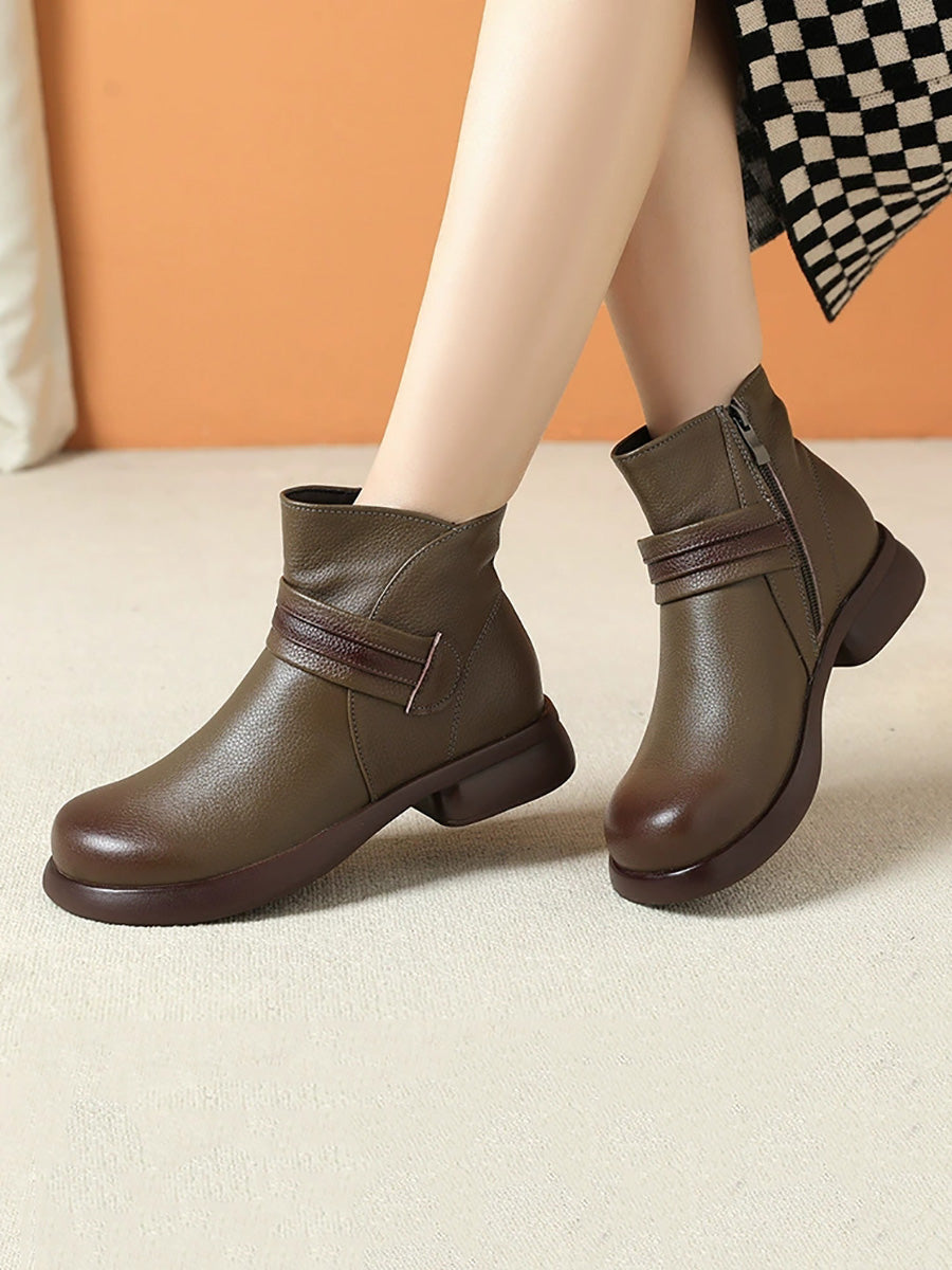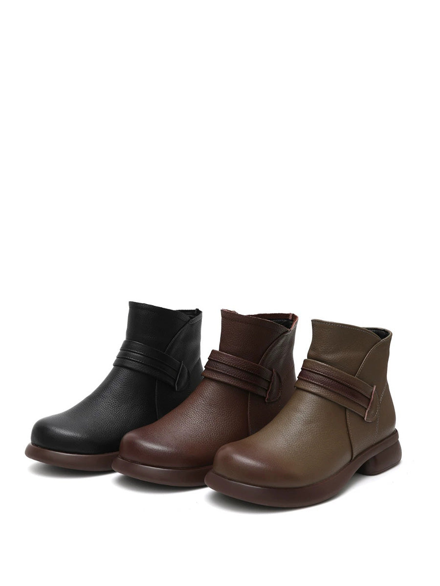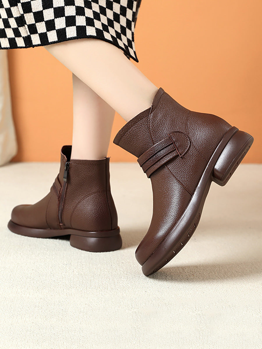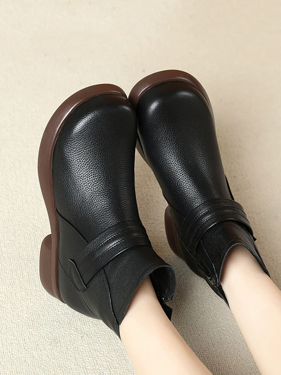 Bottes d'hiver pour femmes en cuir véritable à petits talons.