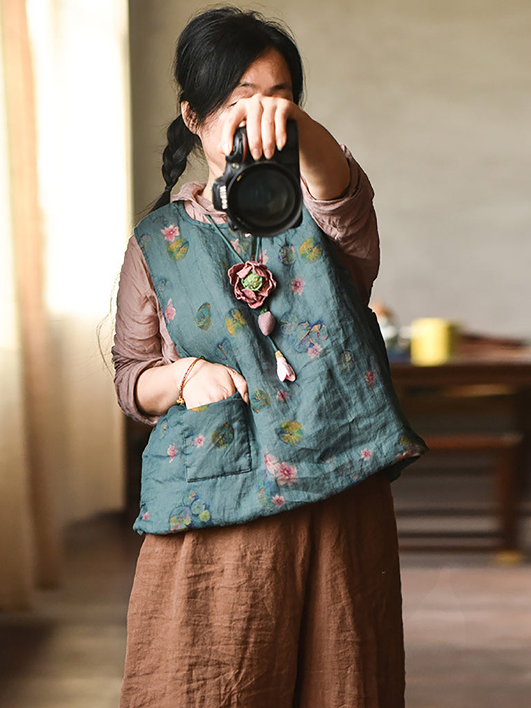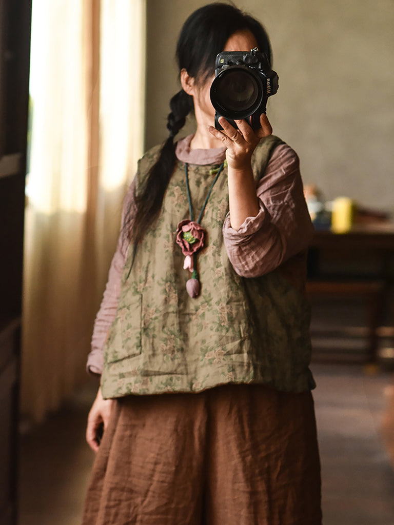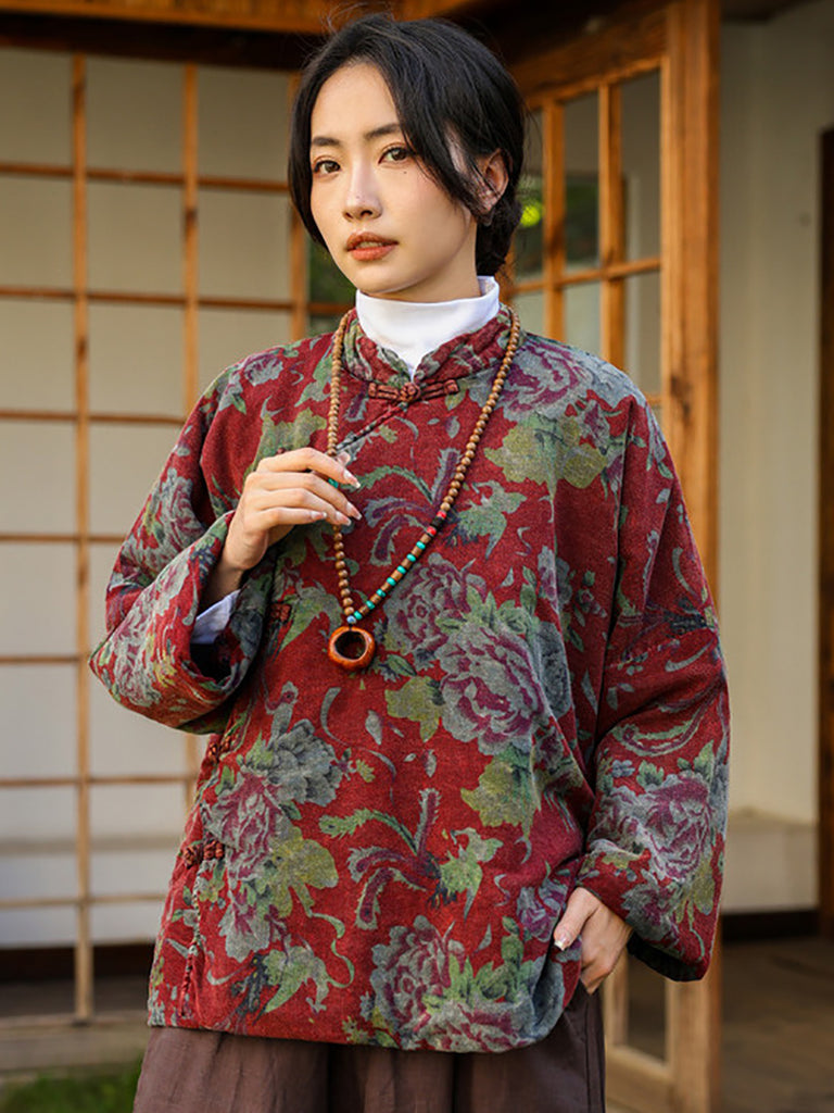 Manteau en coton boutonné vintage pour femme avec motif floral d'automne