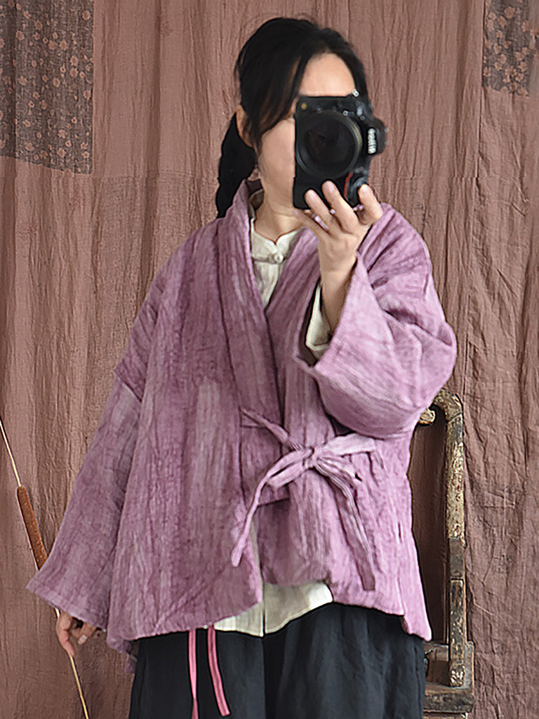 Manteau d'hiver en coton à boutons et poches pour femme avec motif floral vintage