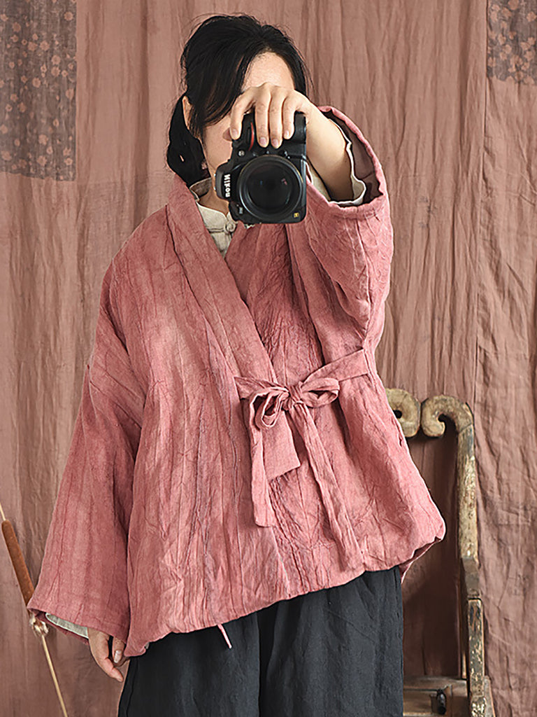 Chemise en lin à bords bruts et rayures vintage pour femme