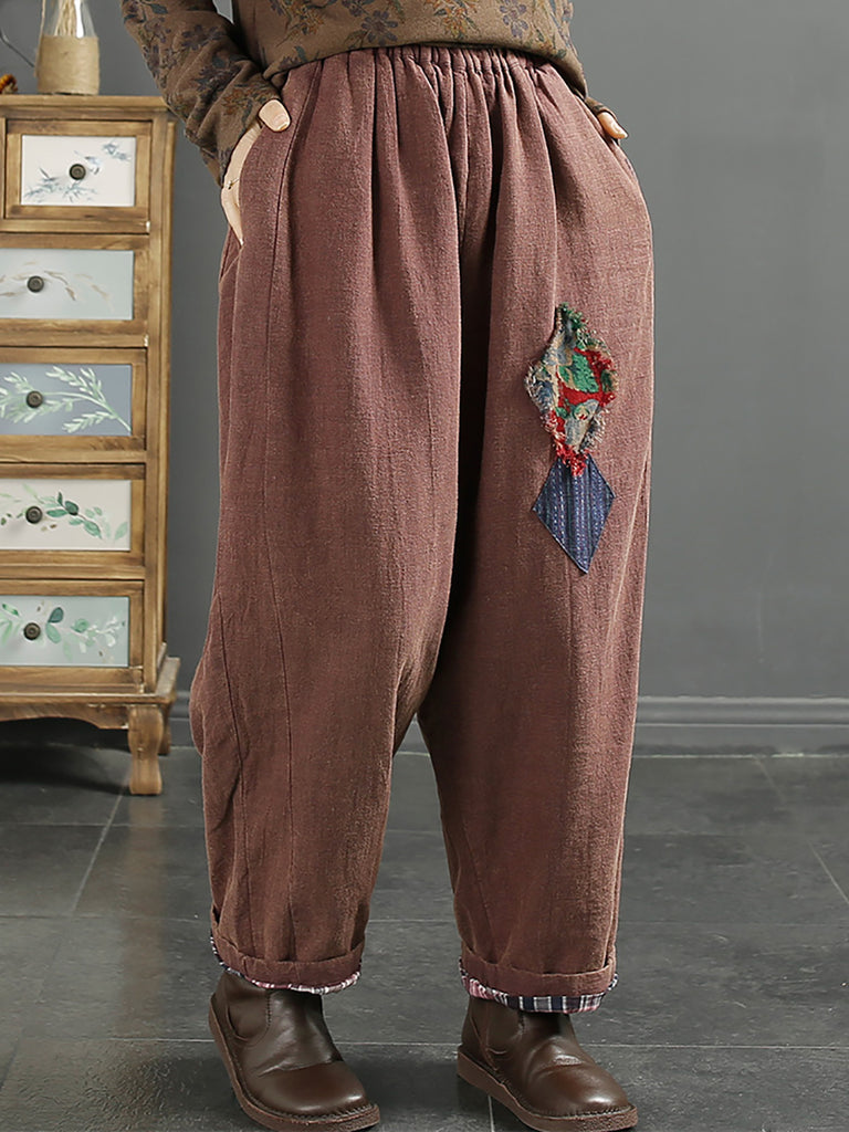 Pantalon sarouel en denim épissé à patchs vintage pour femme