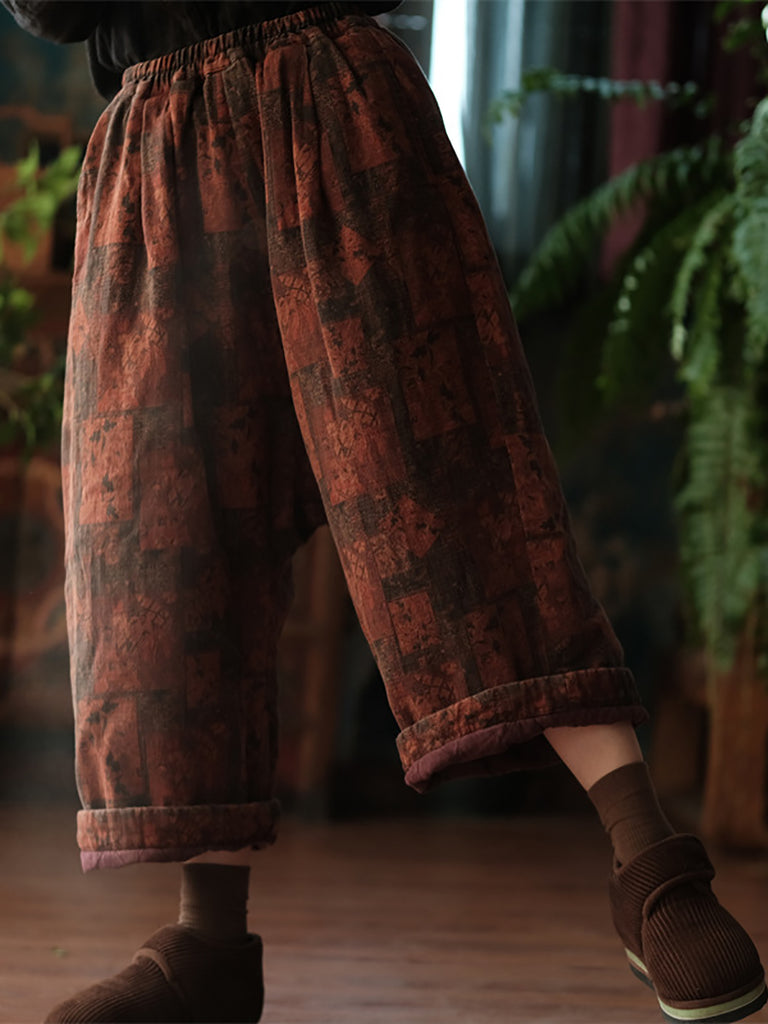 Pantalon sarouel ample en velours côtelé à carreaux rétro pour femmes de grande taille