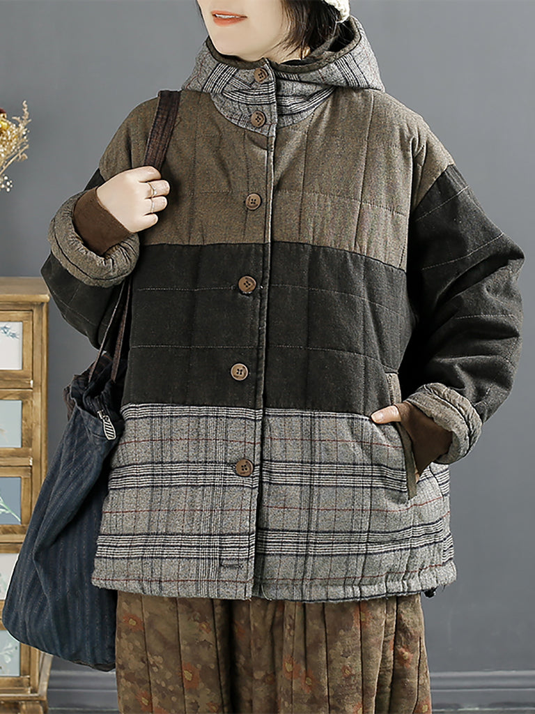 Manteau long en coton à poches colorblock vintage d'hiver pour femmes