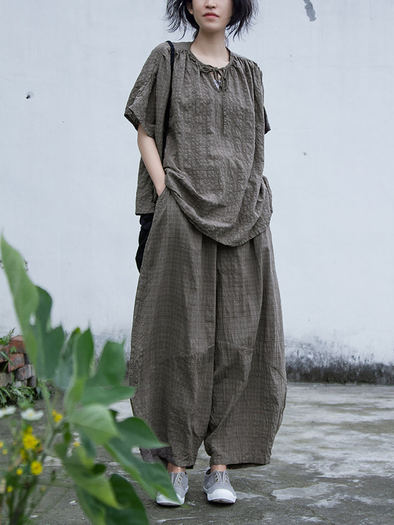Pantalon sarouel rembourré uni vintage pour femmes de grande taille