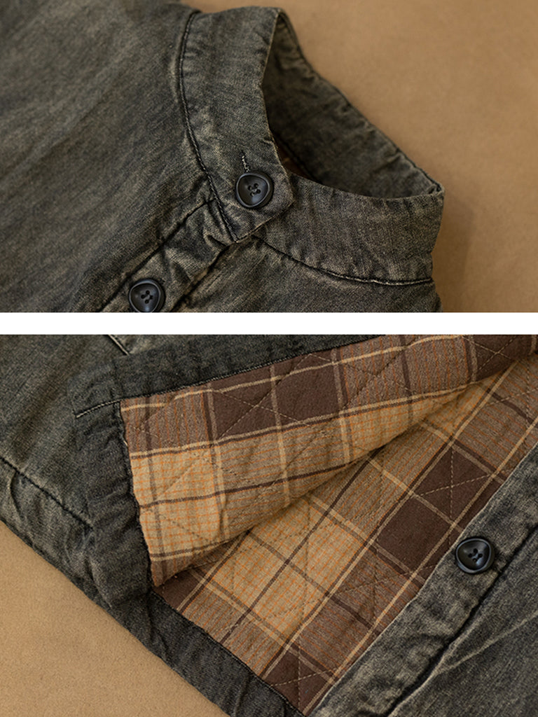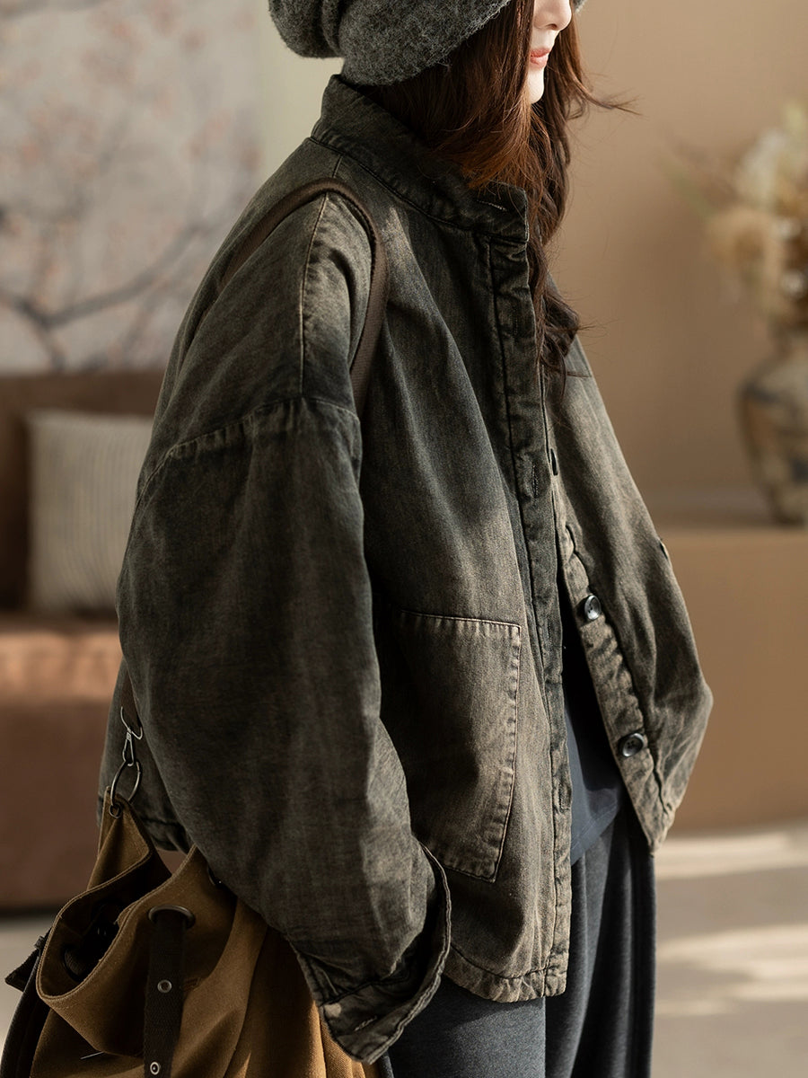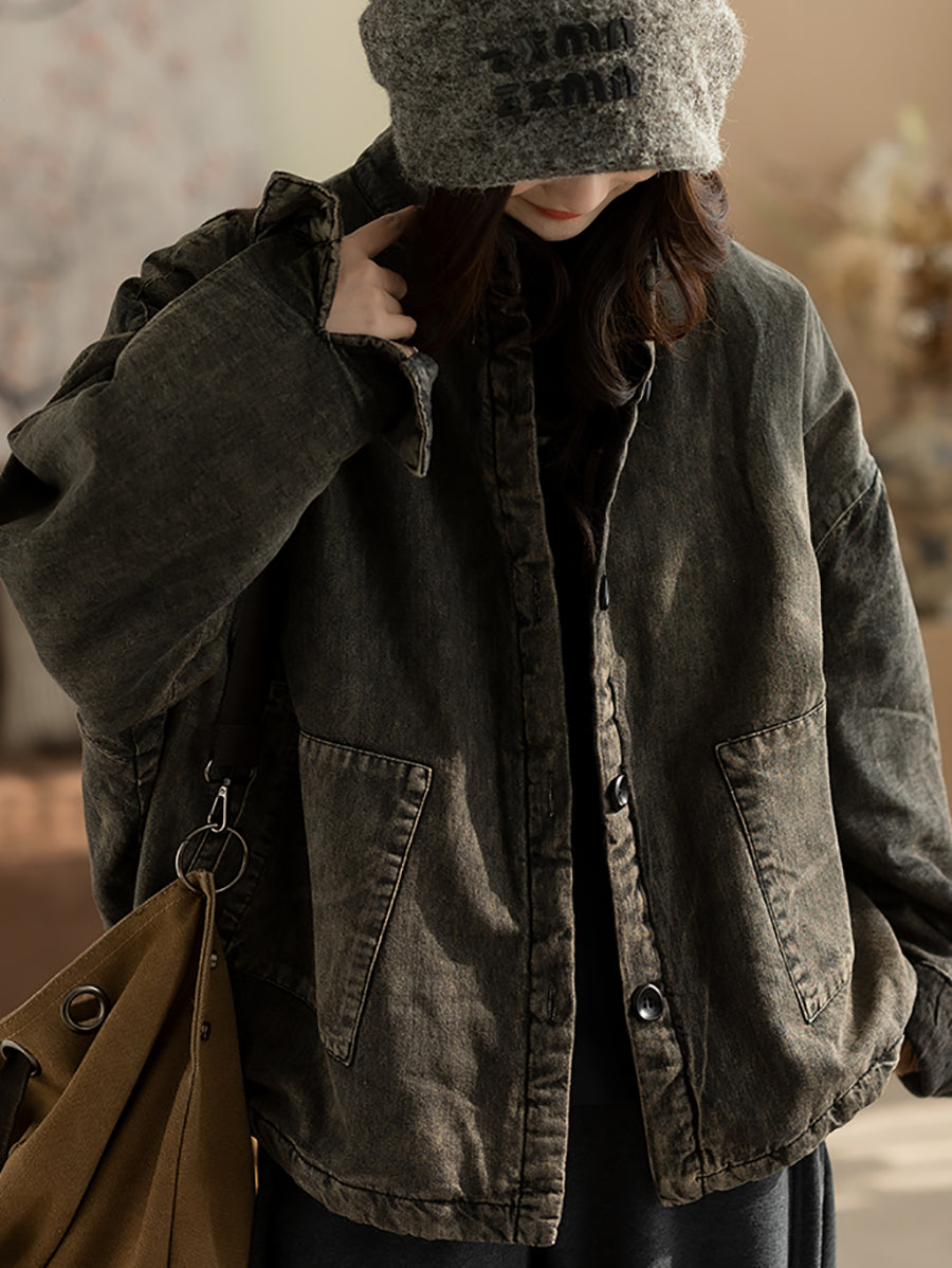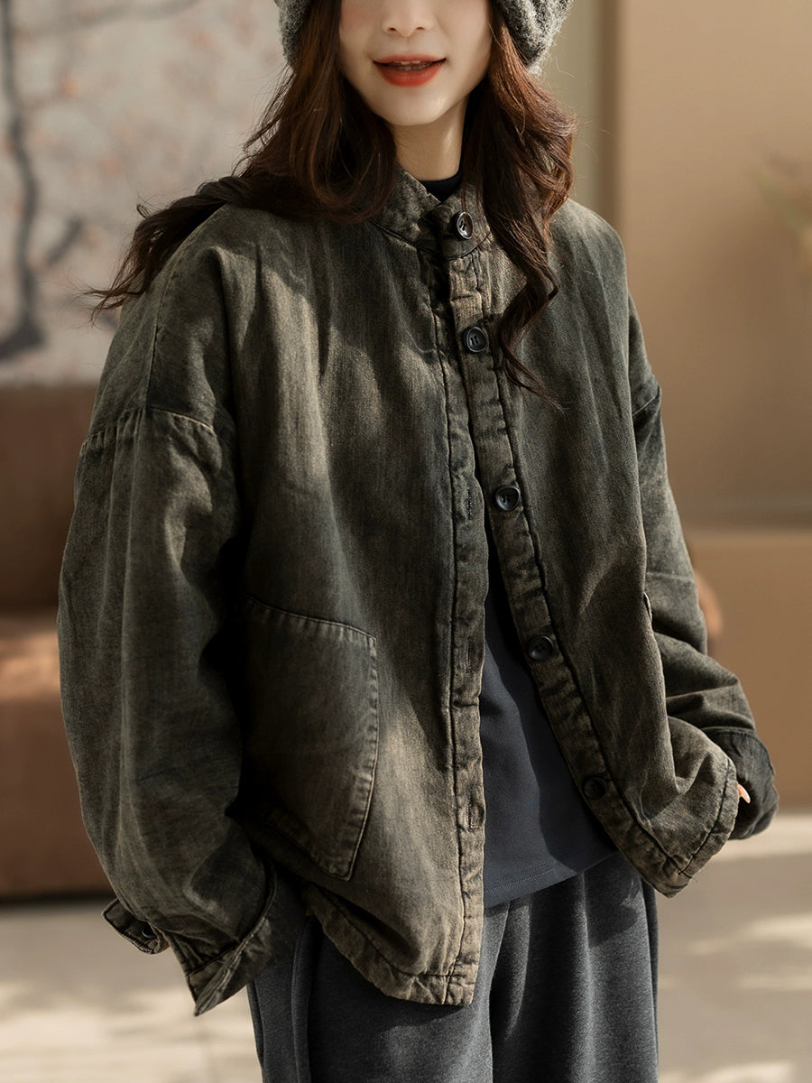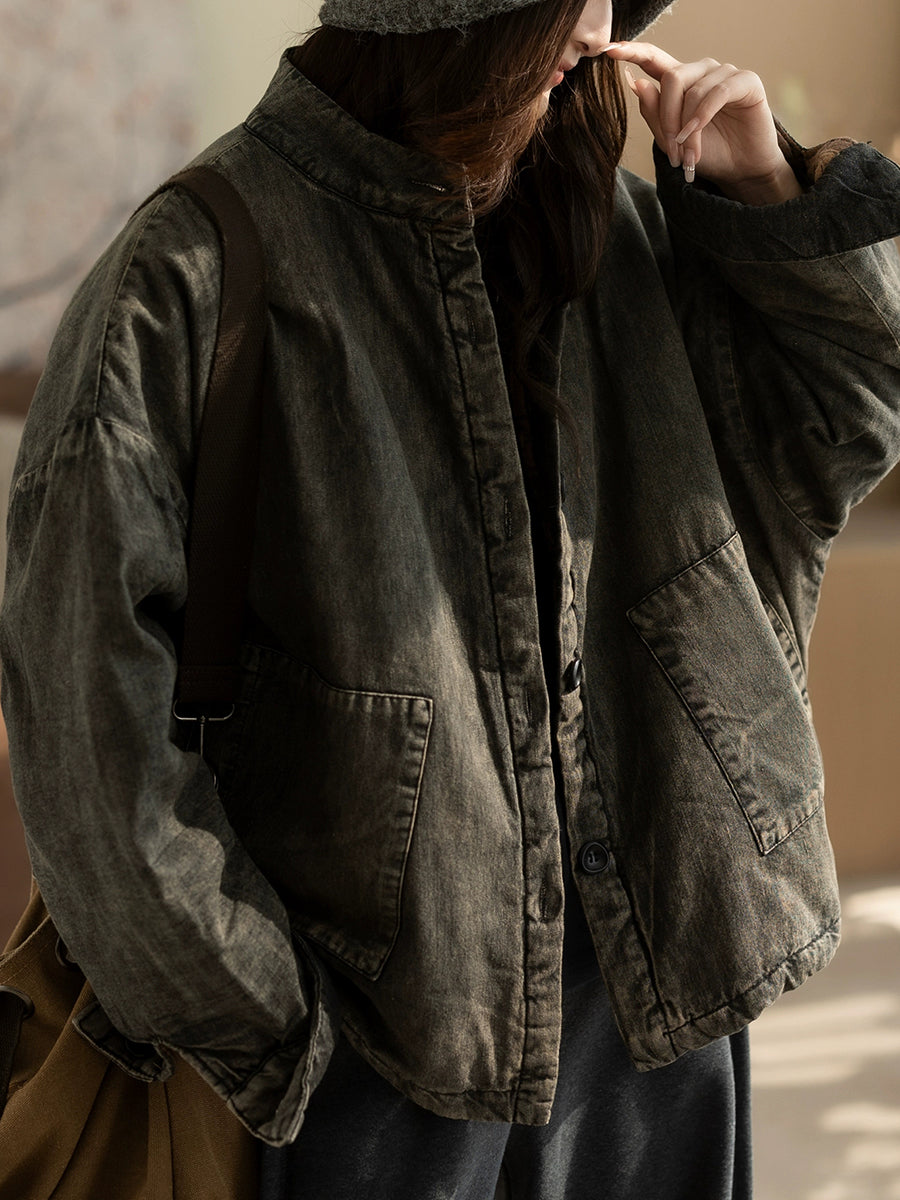 Manteau d'hiver rétro pour femme, couleur unie, col montant et matelassé