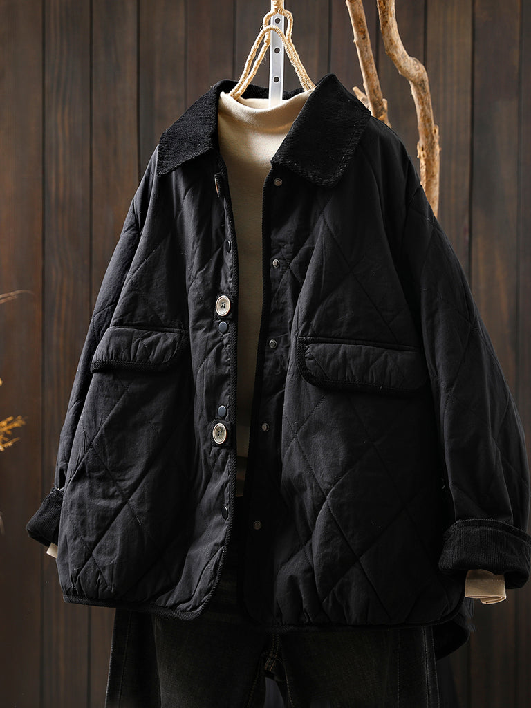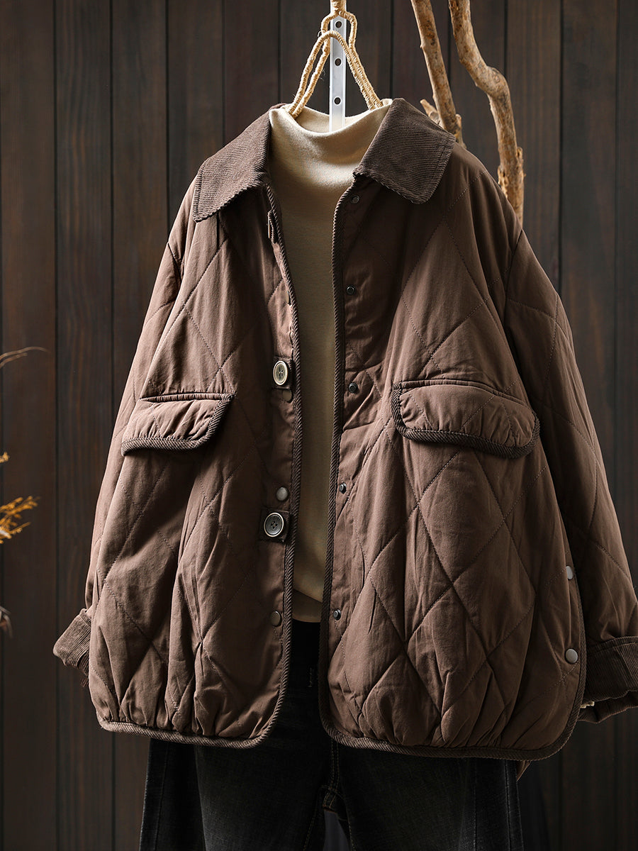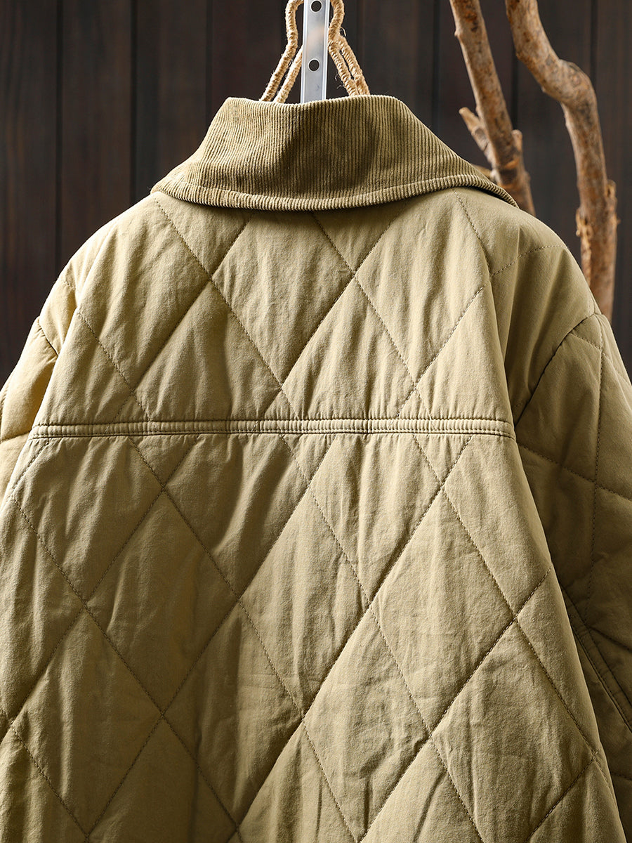 Manteau d'hiver rétro pour femme, couleur unie, col rabattu, matelassé