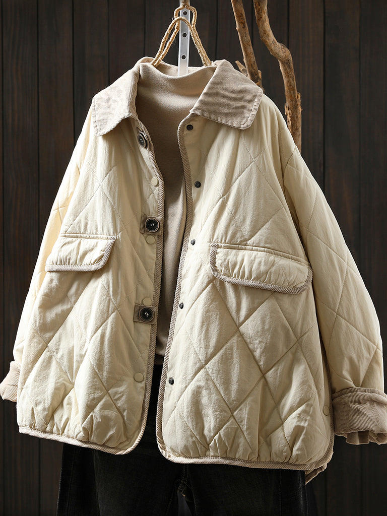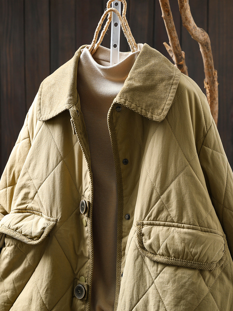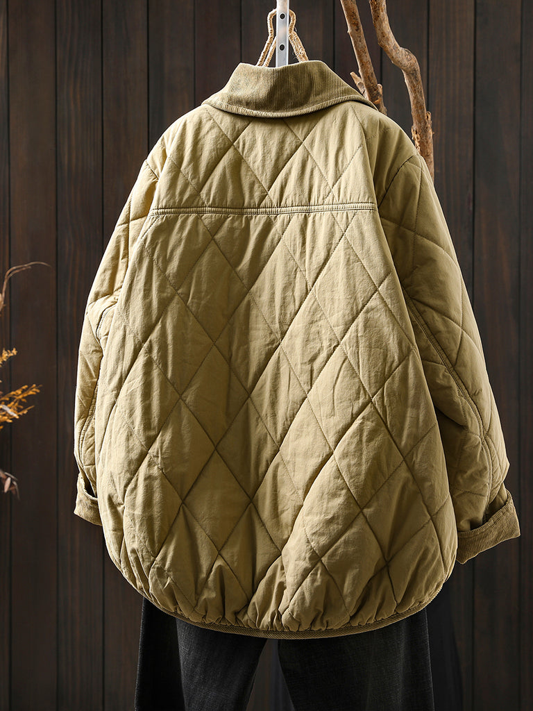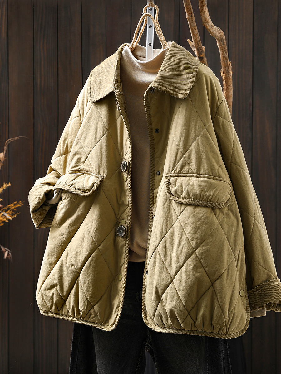 Manteau d'hiver rétro pour femme, couleur unie, col rabattu, matelassé