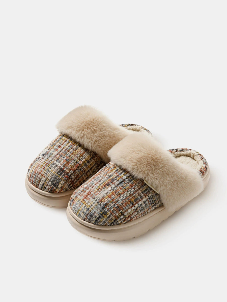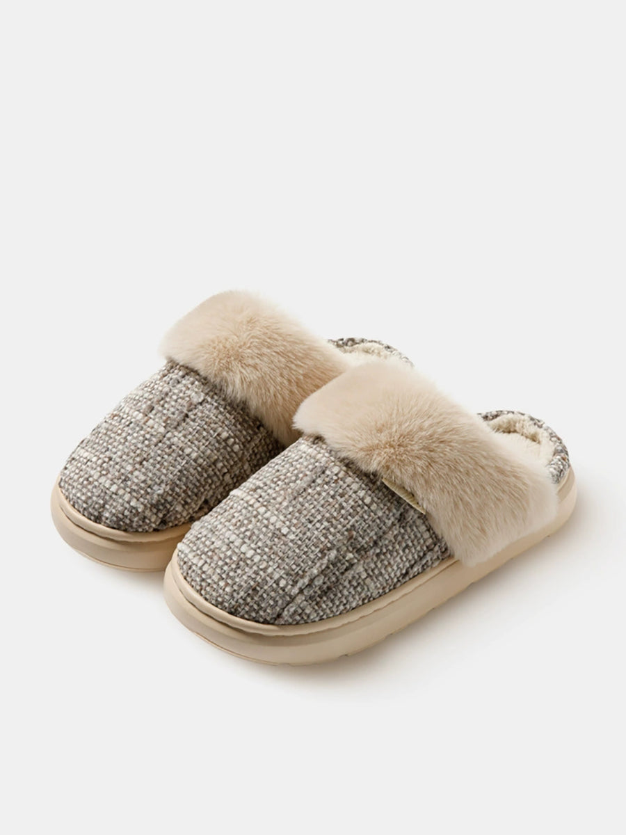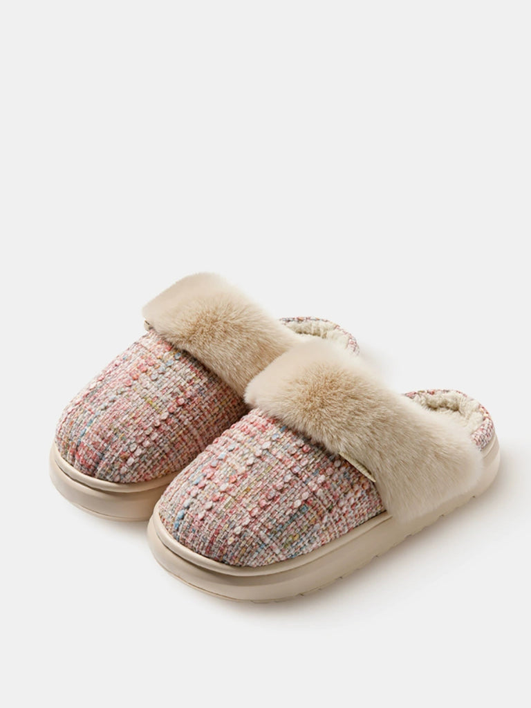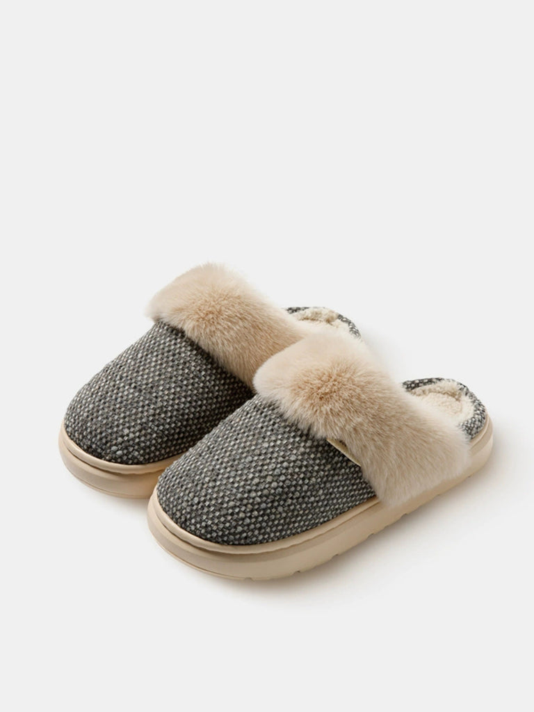 Pantoufles d'intérieur d'hiver pour couple, couleur unie, en peluche.
