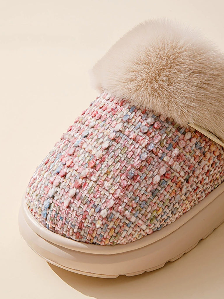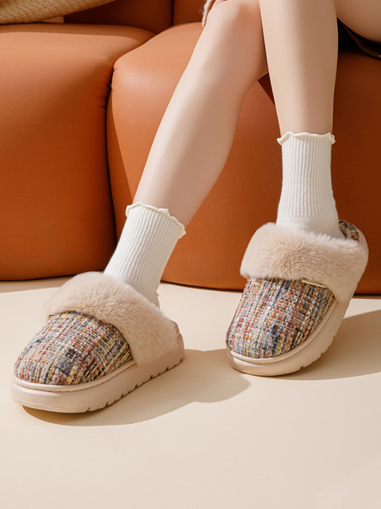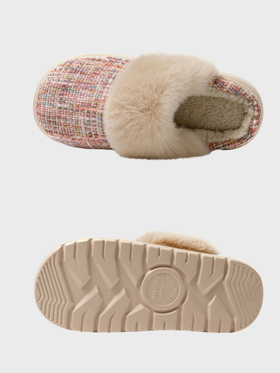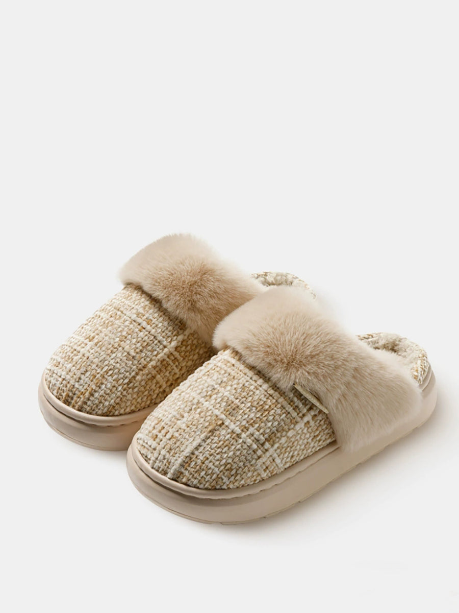 Pantoufles d'intérieur d'hiver pour couple, couleur unie, en peluche.