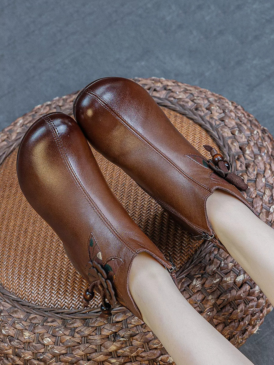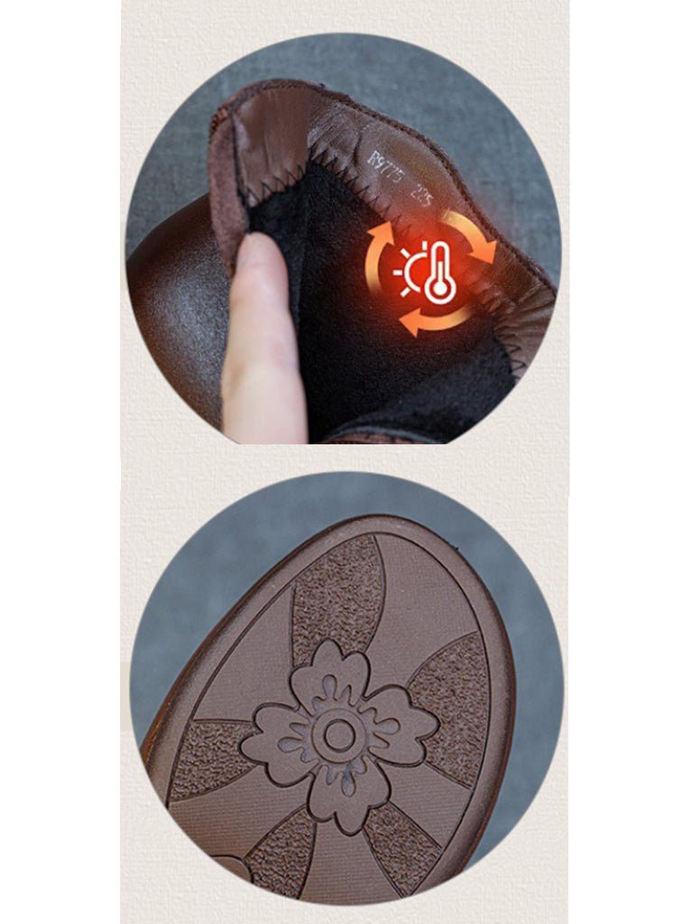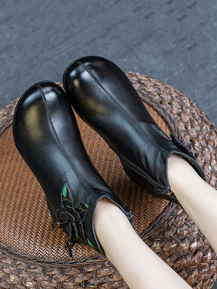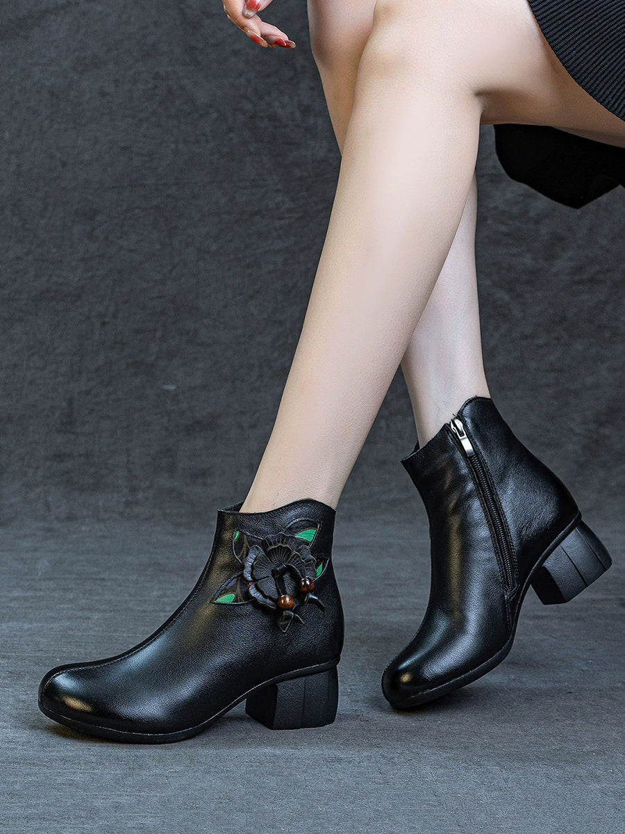 Bottines d'hiver pour femmes en cuir fendu à talons moyens et à fleurs
