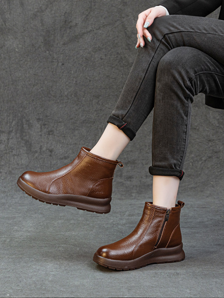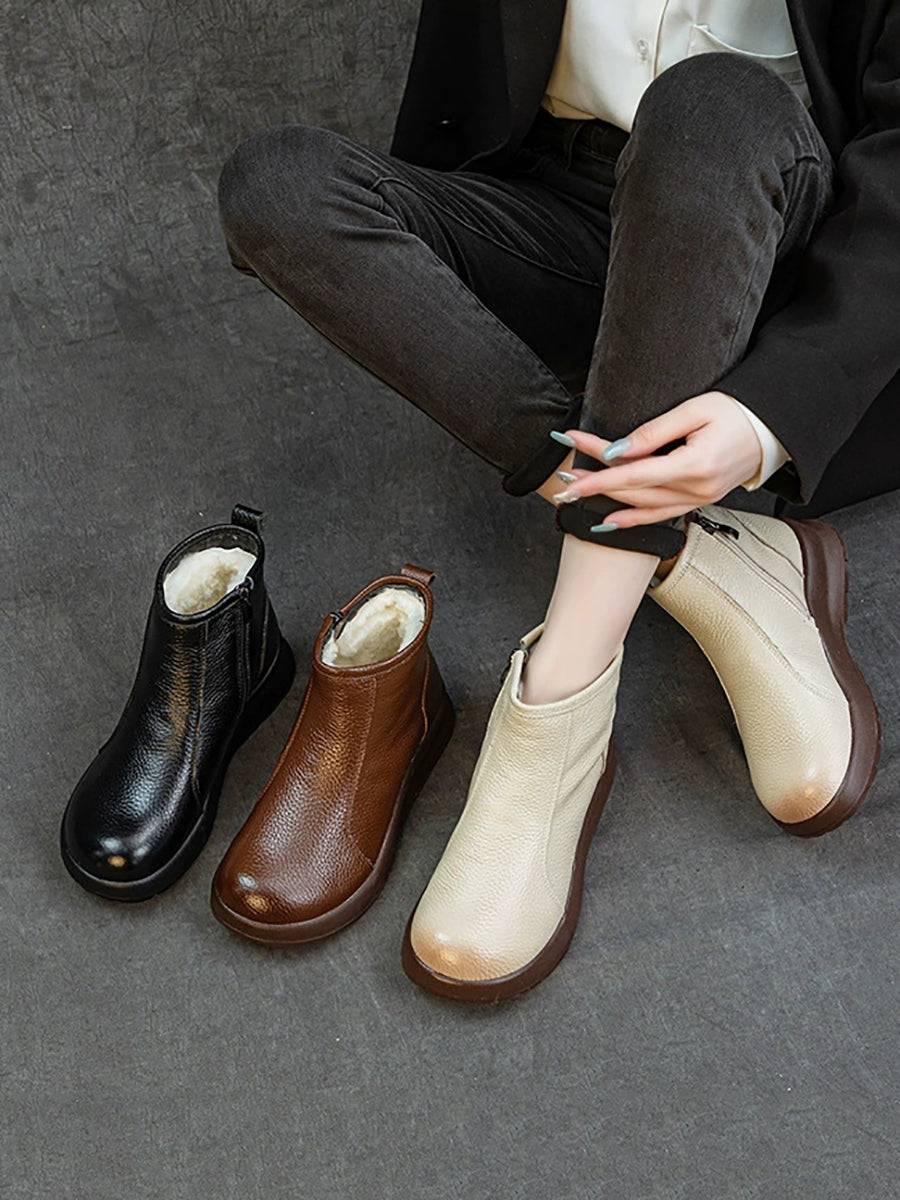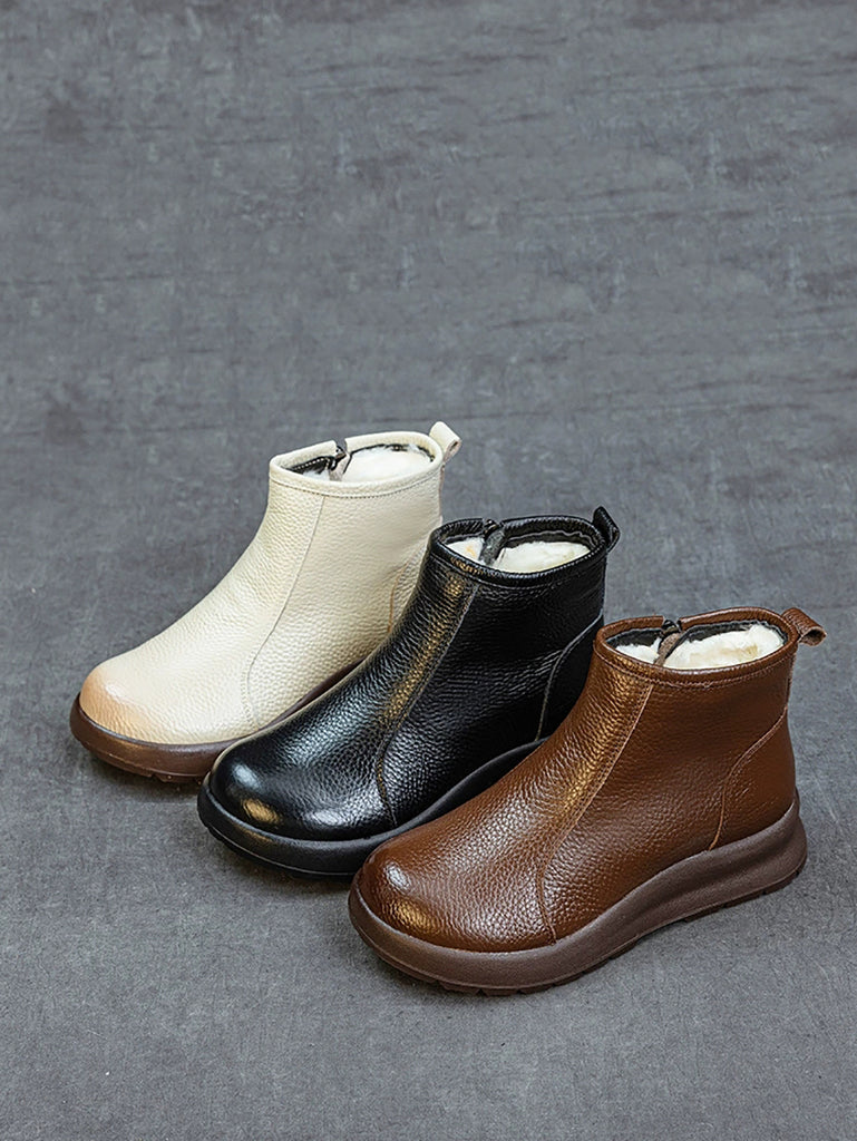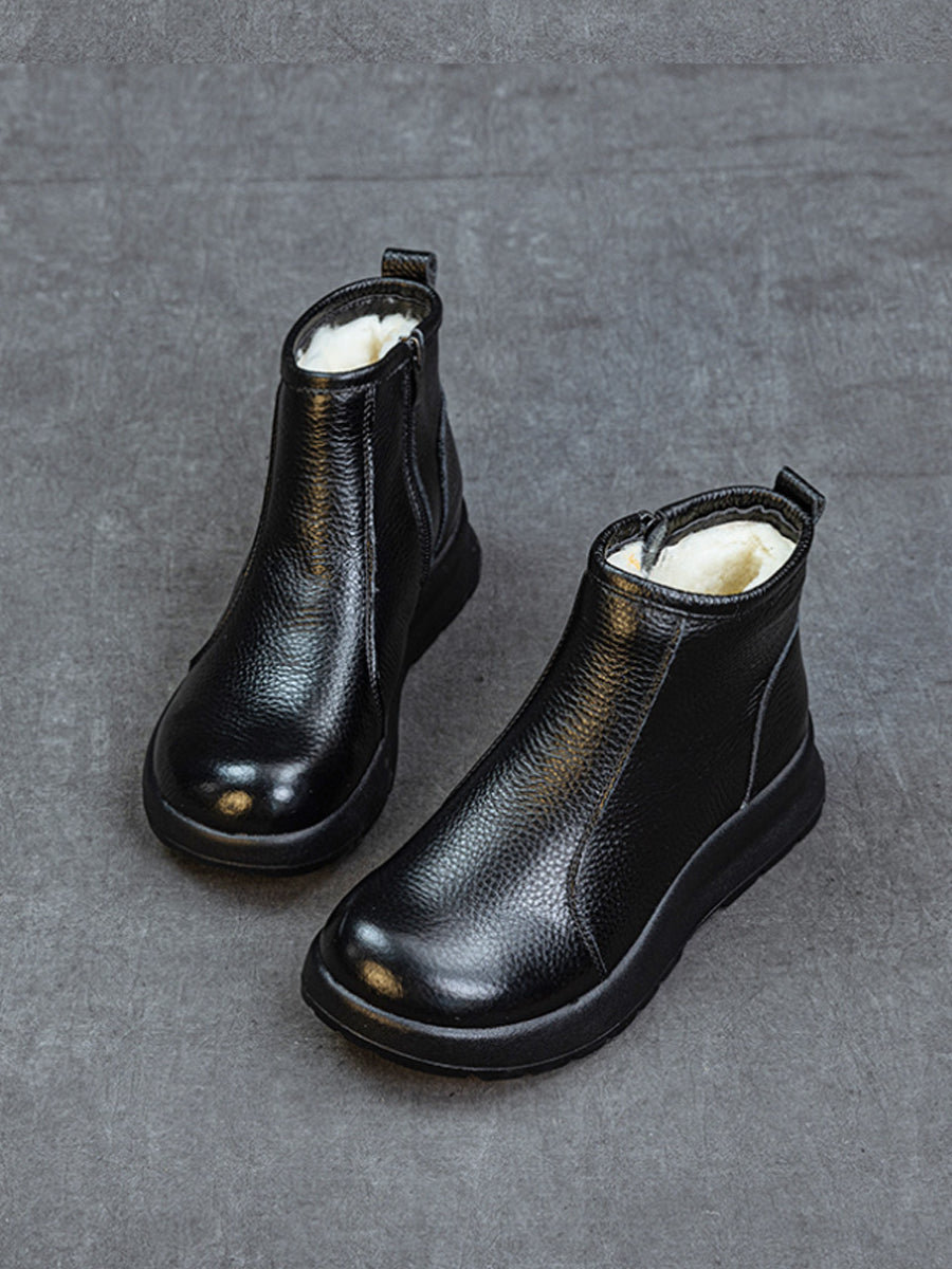 Bottes d'hiver pour femmes en cuir véritable doublées de polaire