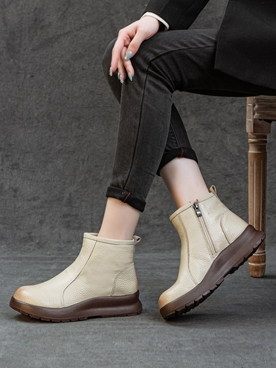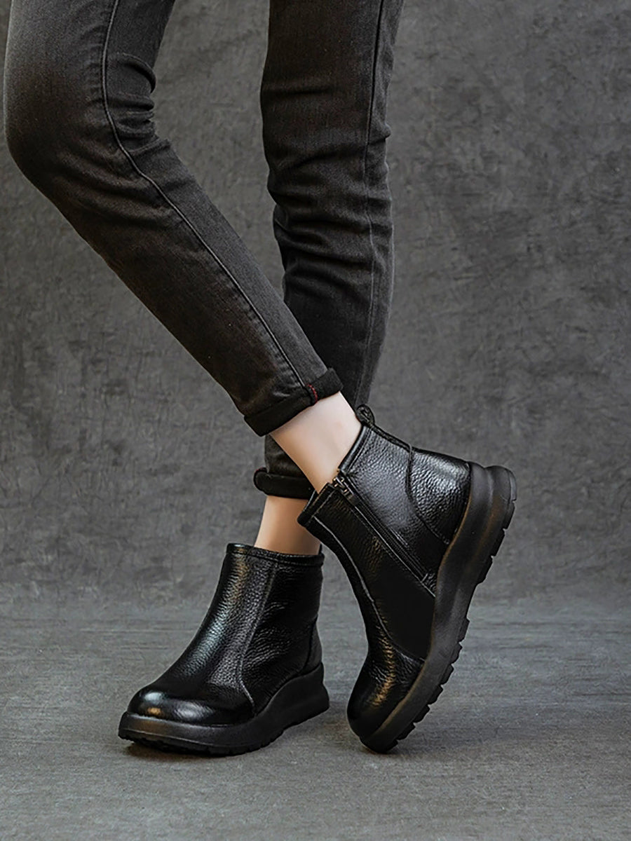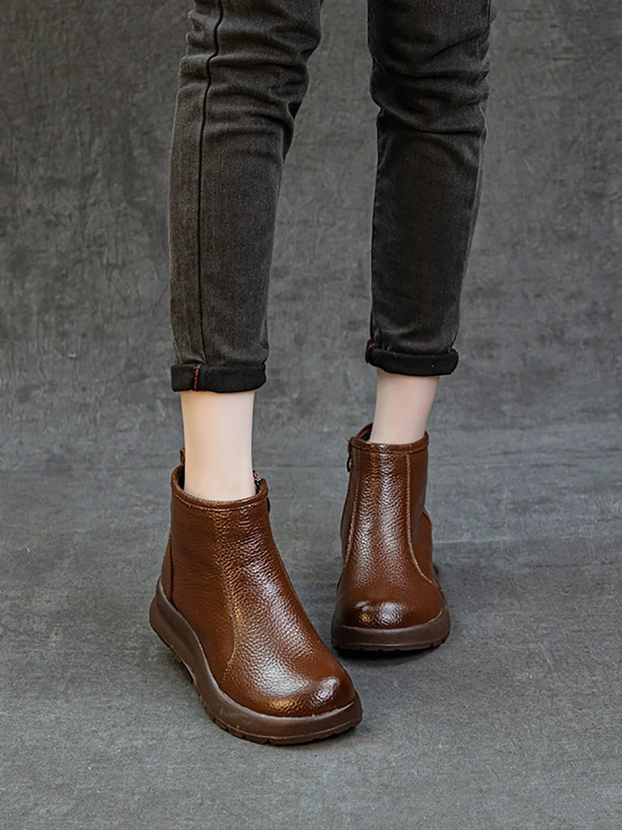 Bottes d'hiver pour femmes en cuir véritable doublées de polaire
