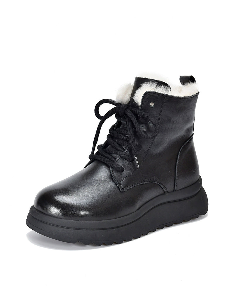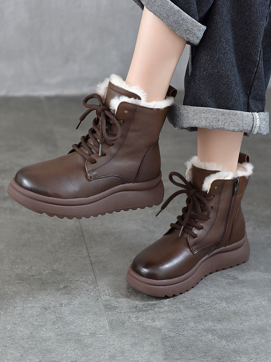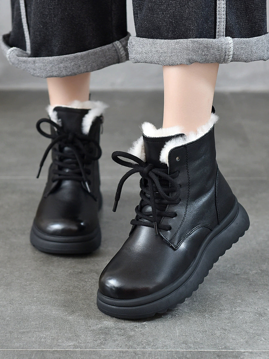 Bottes d'hiver pour femmes en cuir véritable doublées de polaire