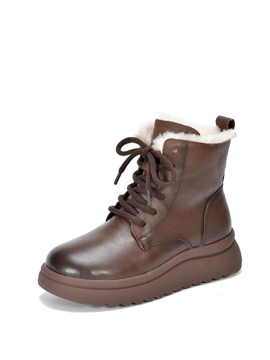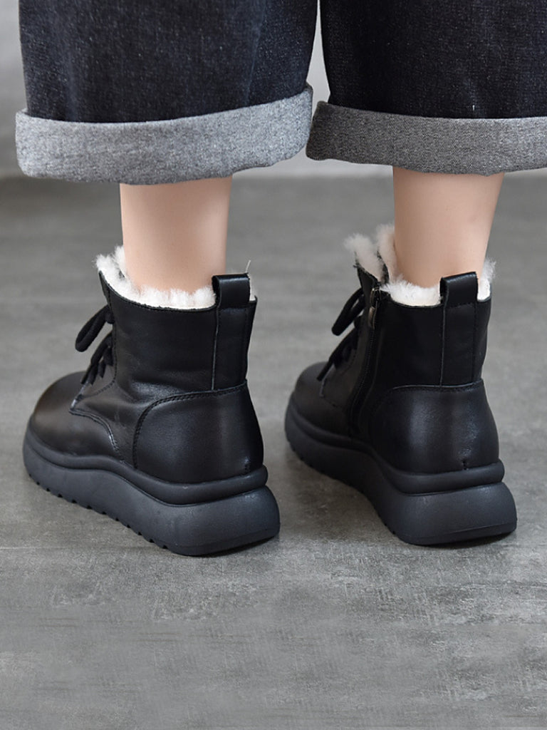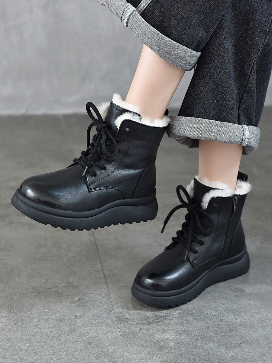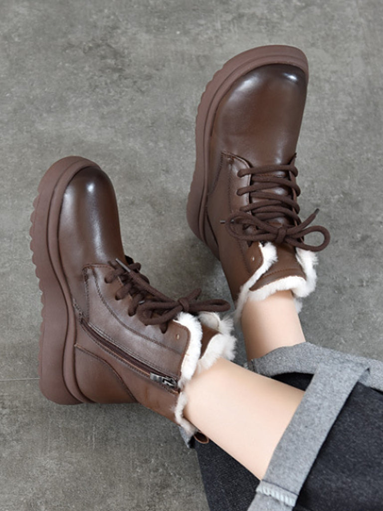 Bottes d'hiver pour femmes en cuir véritable doublées de polaire
