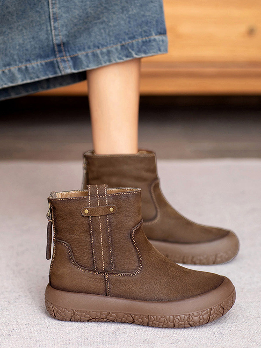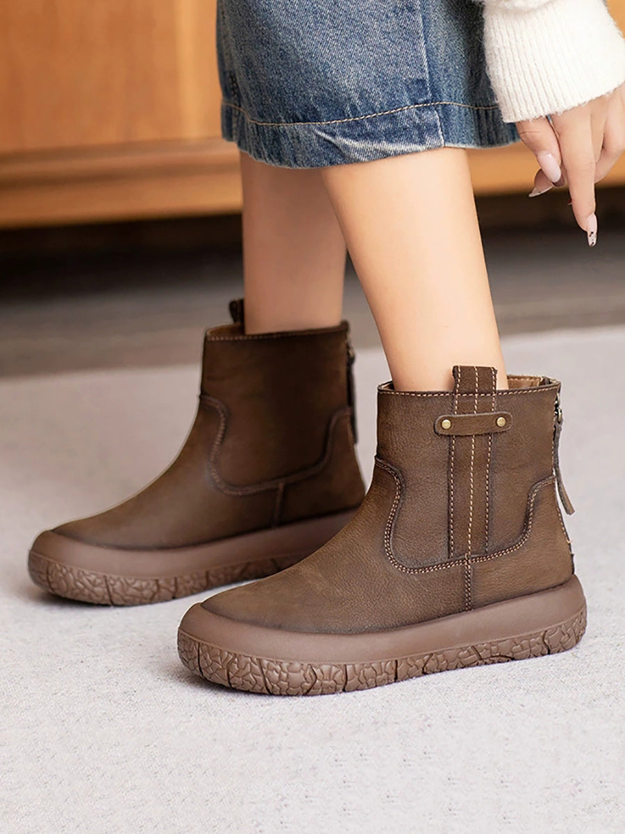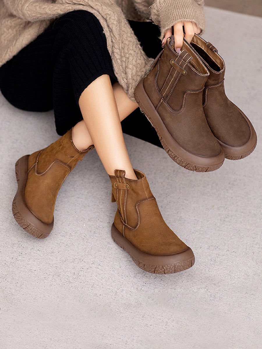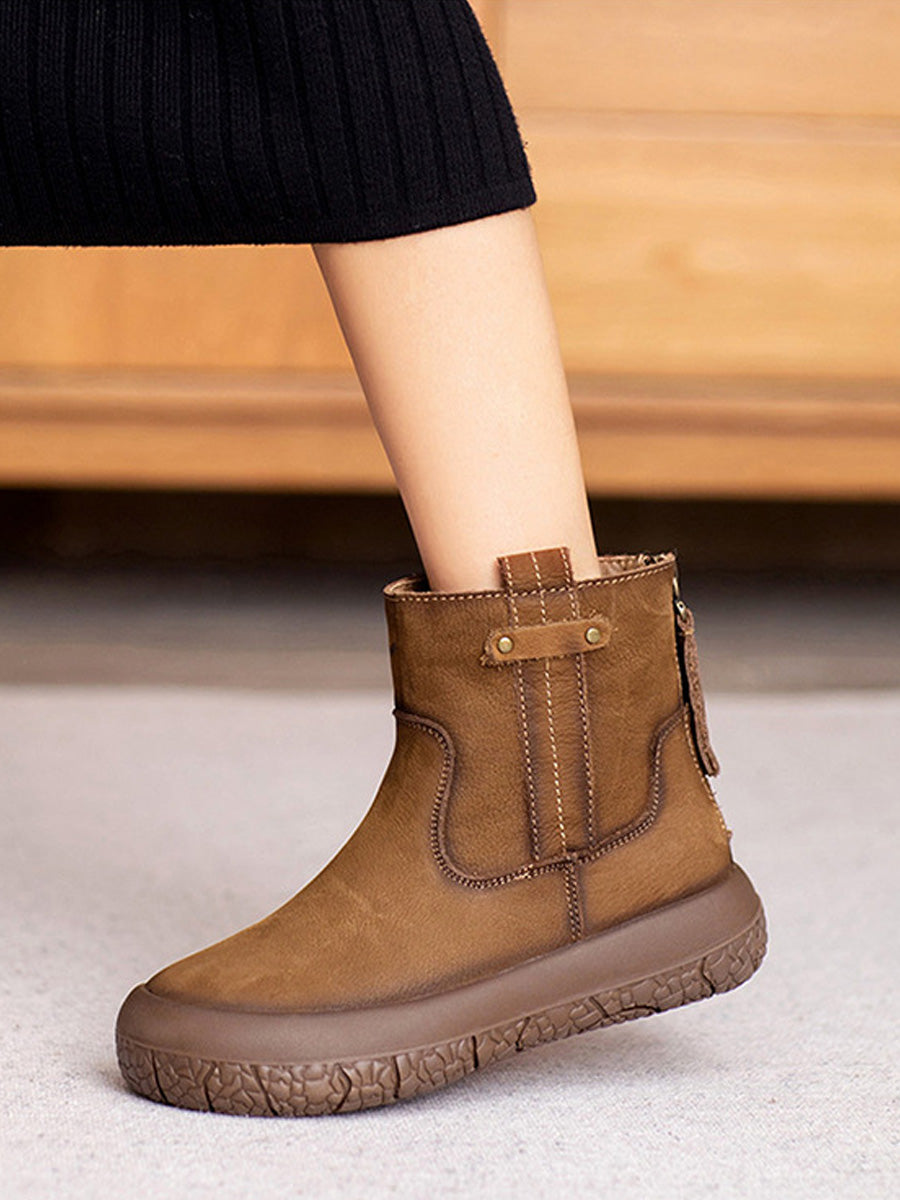 Bottes d'hiver pour femmes en cuir doublées de polaire