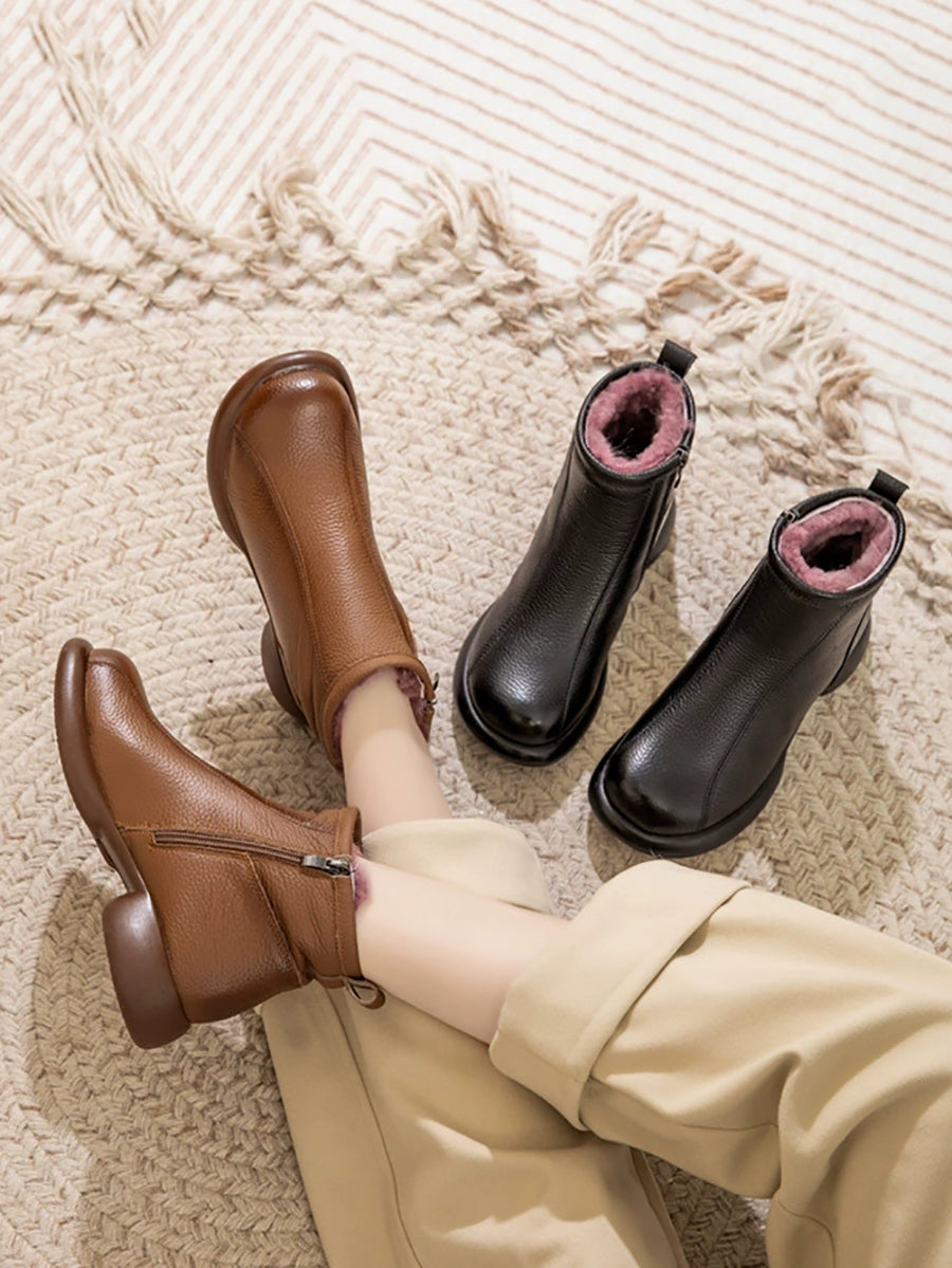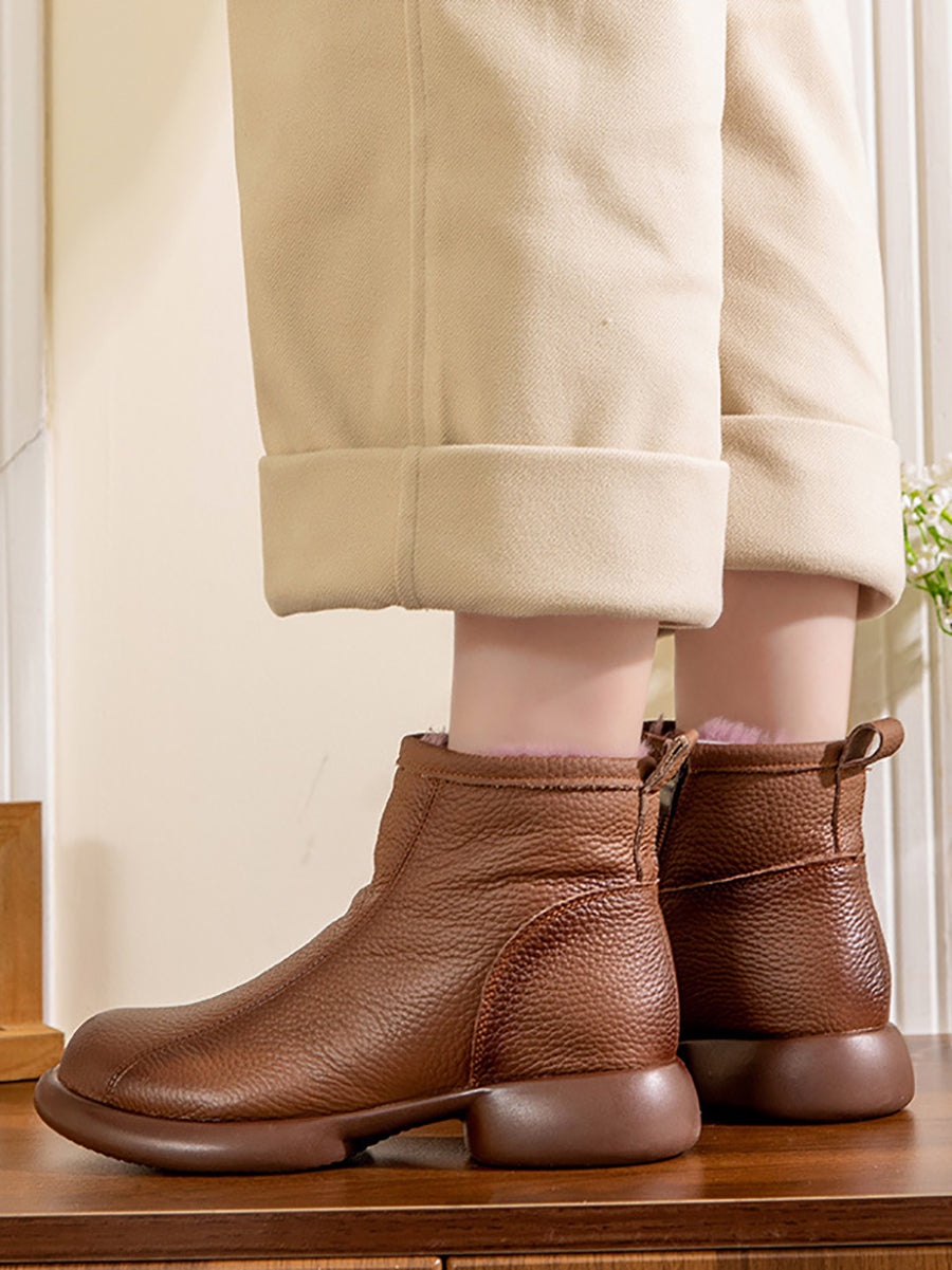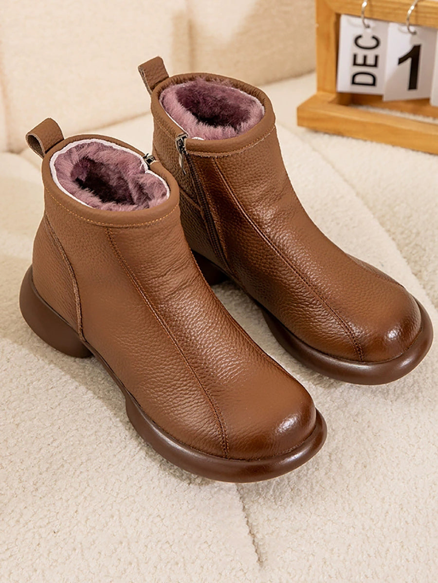 Bottines d'hiver pour femmes, couleur unie, doublées en polaire