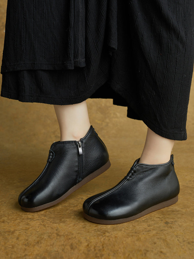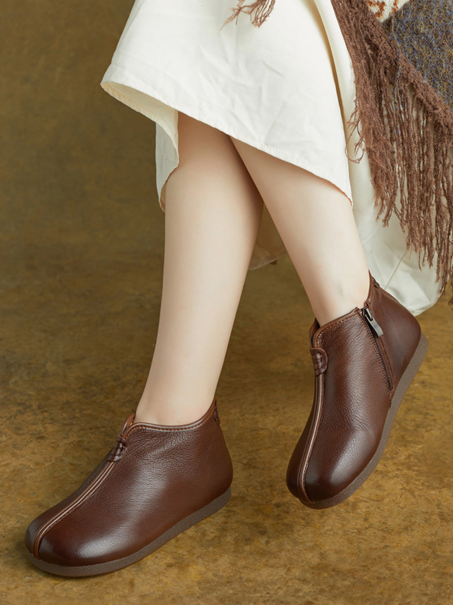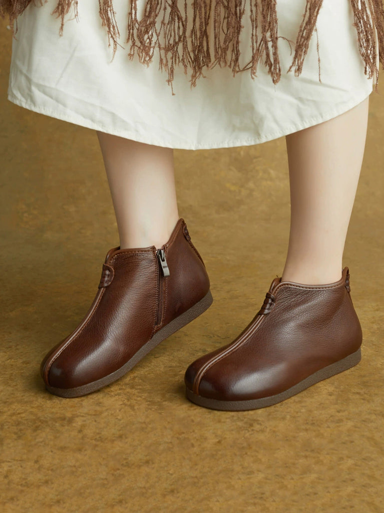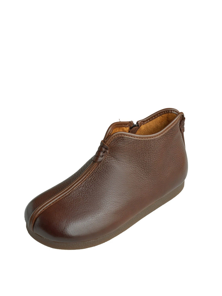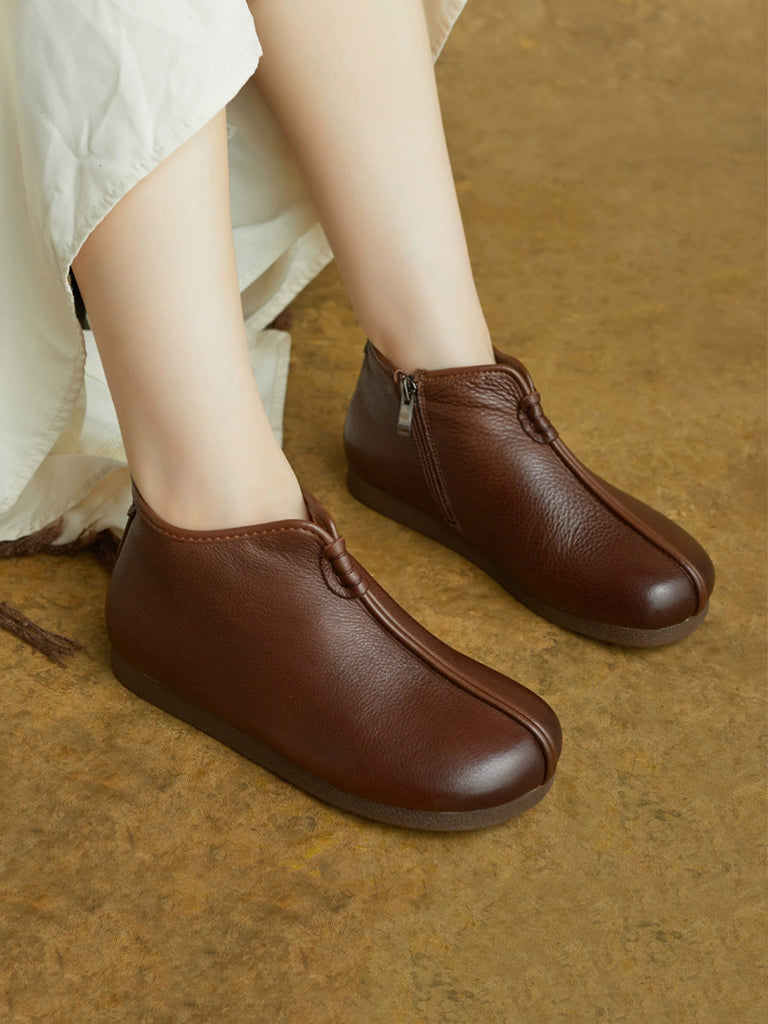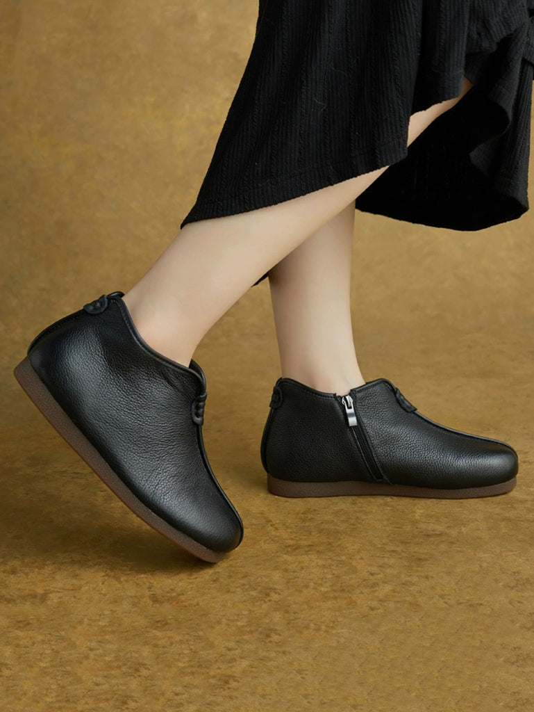 Bottines d'hiver rétro en cuir véritable pour femmes