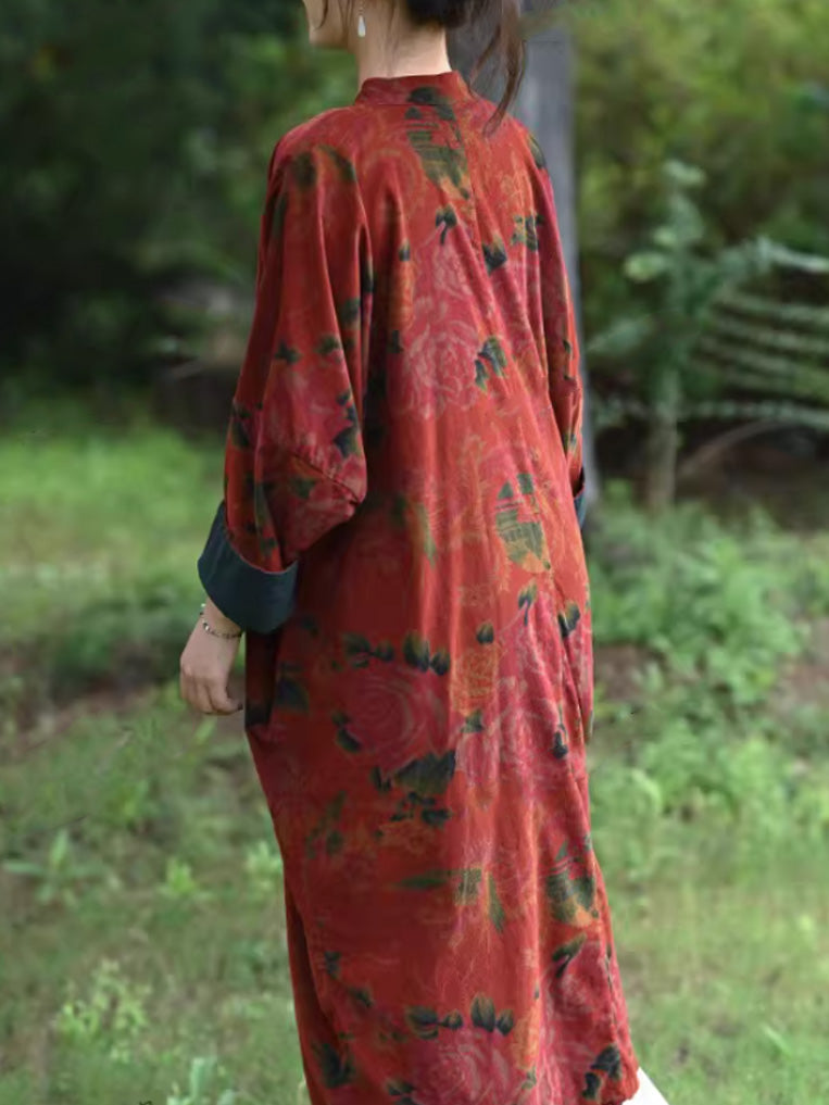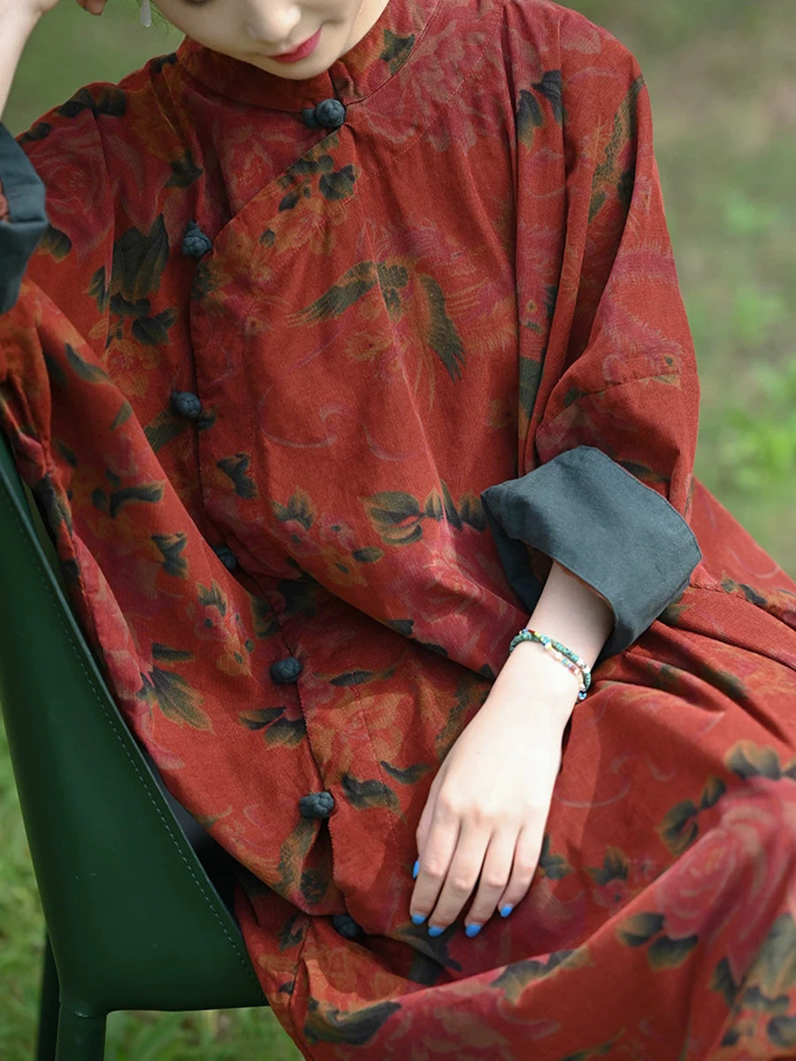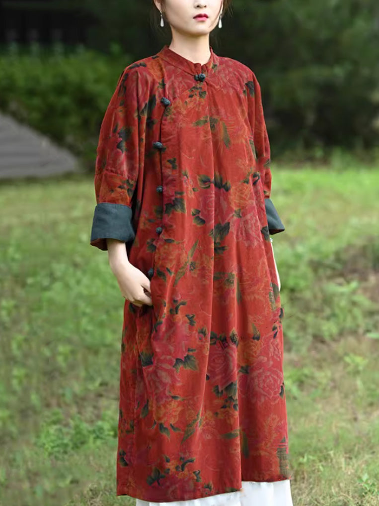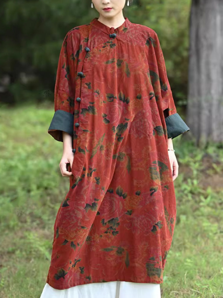 Robe d'automne vintage à fleurs pour femme, col montant, 100 % coton