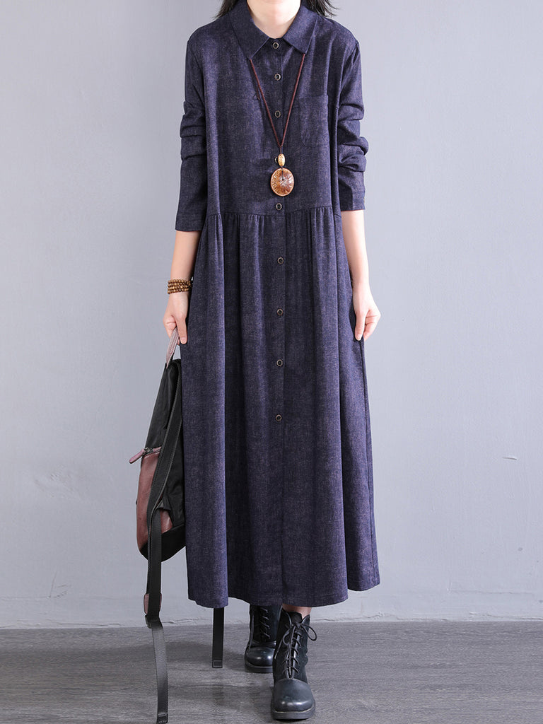 Robe d'automne à col rabattu pour femme, 100 % coton, couleur unie