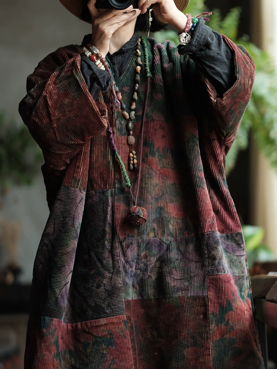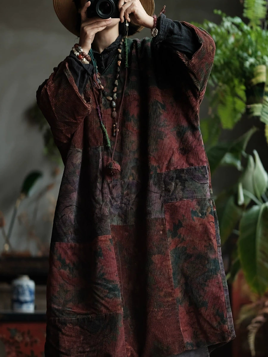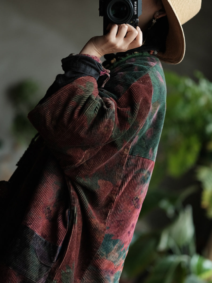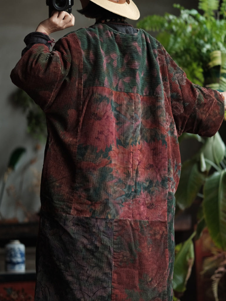 Manteau d'hiver vintage pour femme, en coton à col en V et matelassé, à fleurs, style vintage.