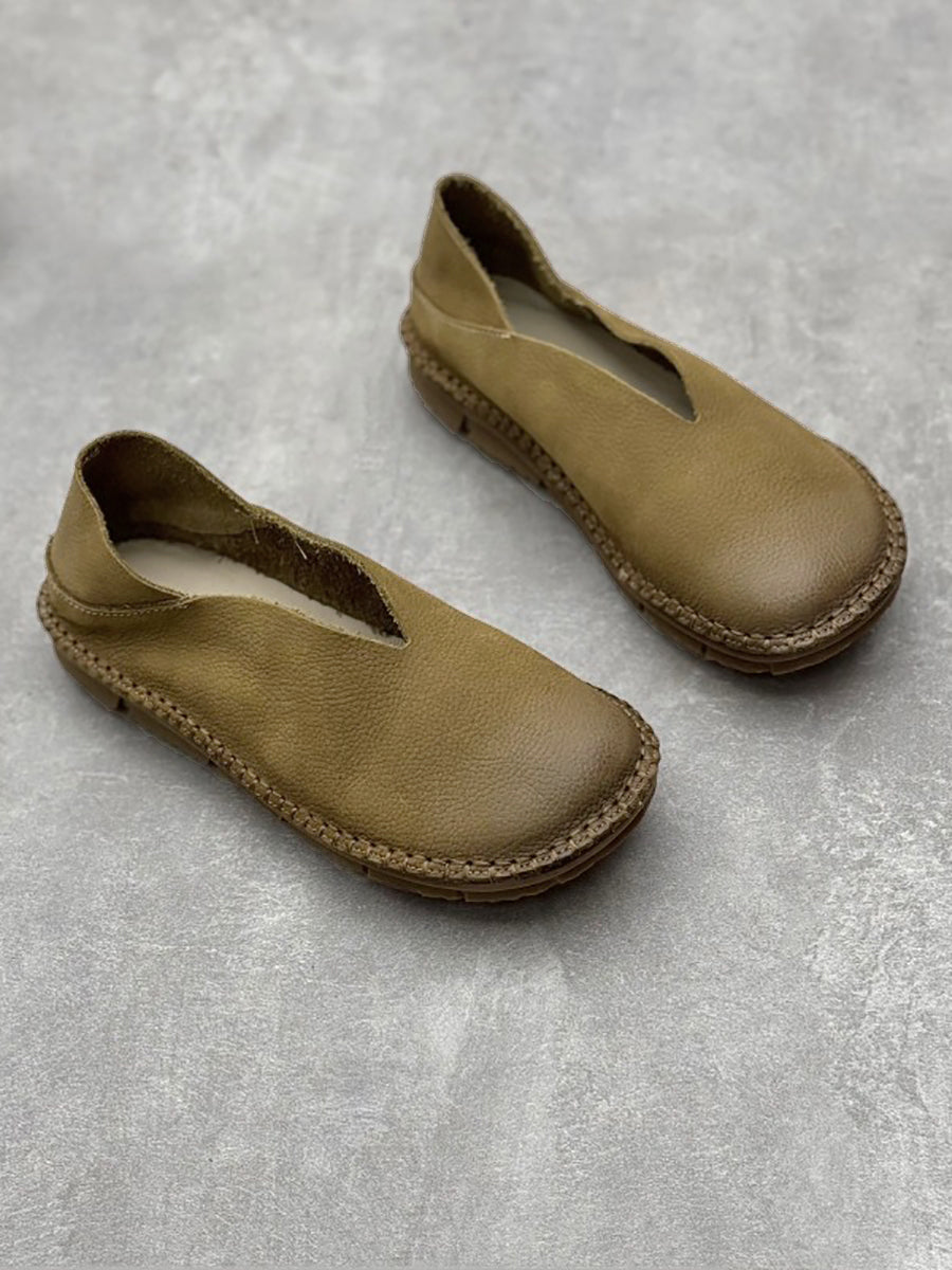 Chaussures plates souples en cuir massif vintage d'été pour femmes